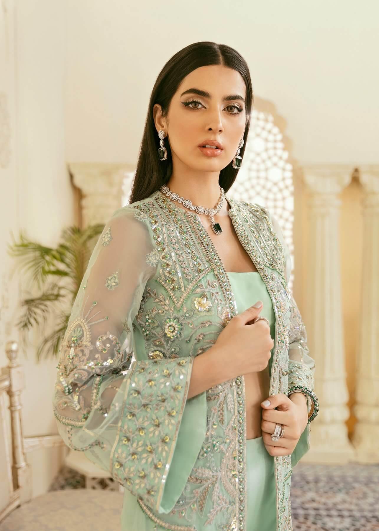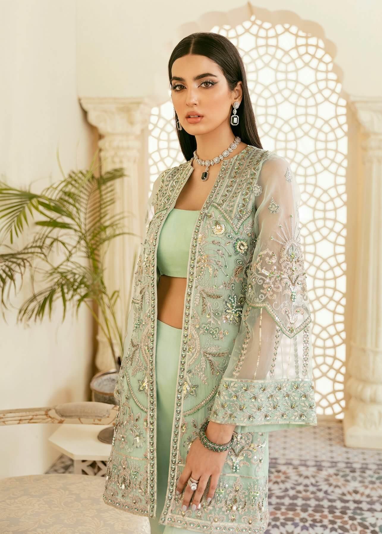 Organza Embroidered Hand Embellished Front 1 yard Organza Embroidered Back 1 yard Organza Embroidered Hand Embellished Sleeve...