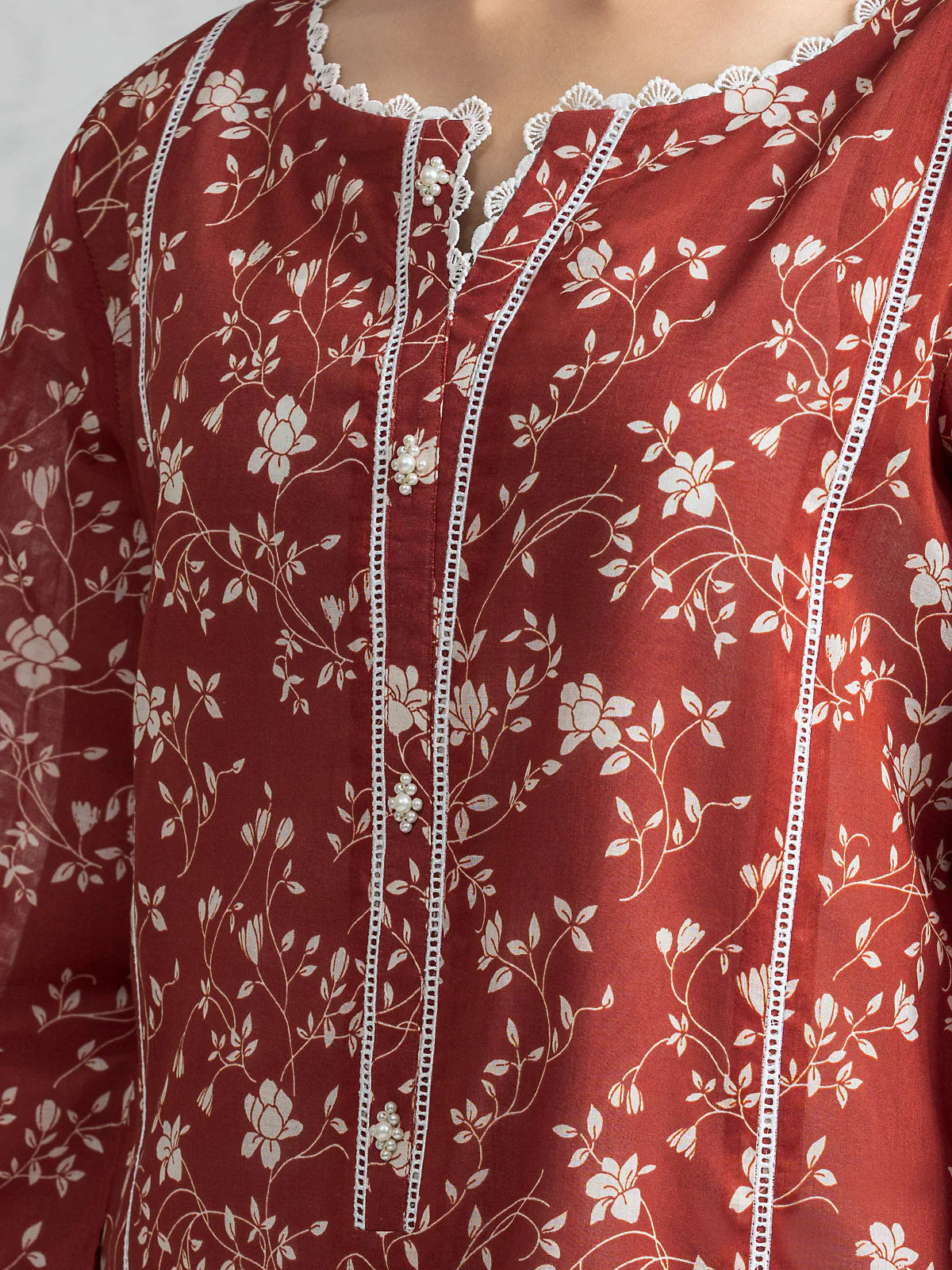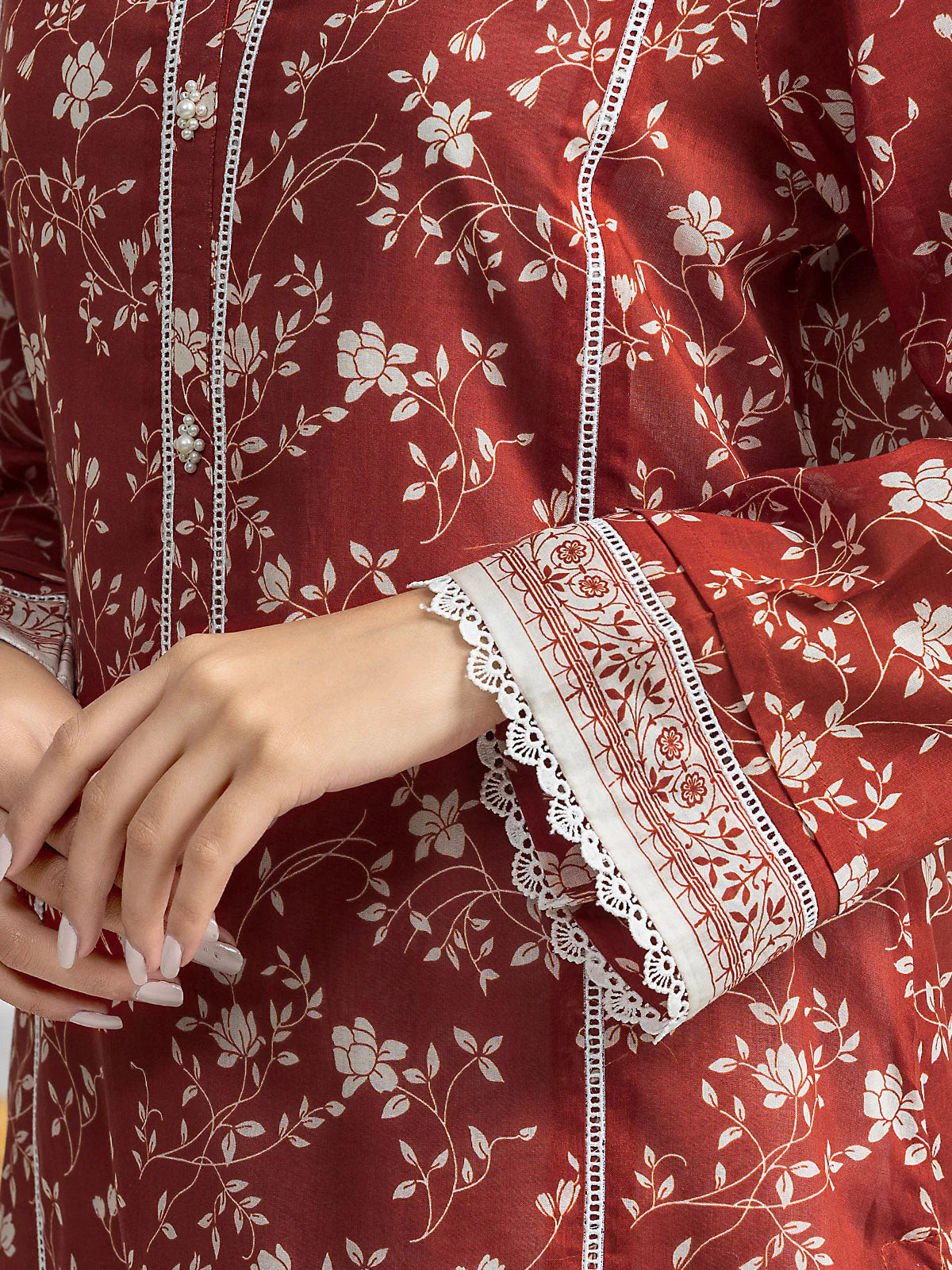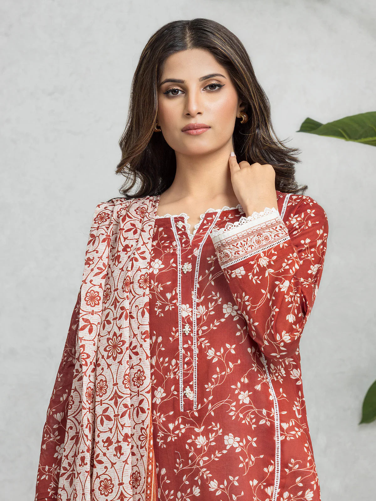 EDENROBE-28581-3P Unstitched Dark Rust Printed Viscose 3 Piece