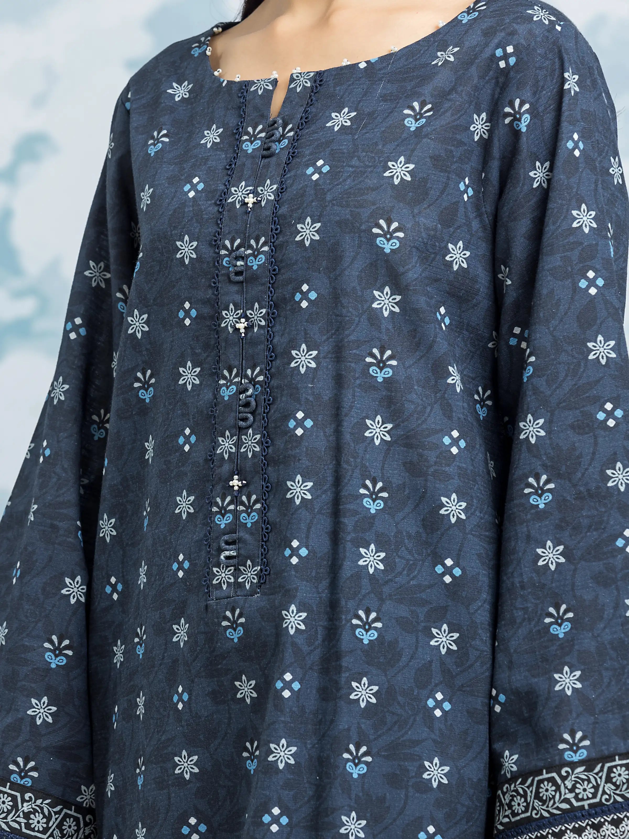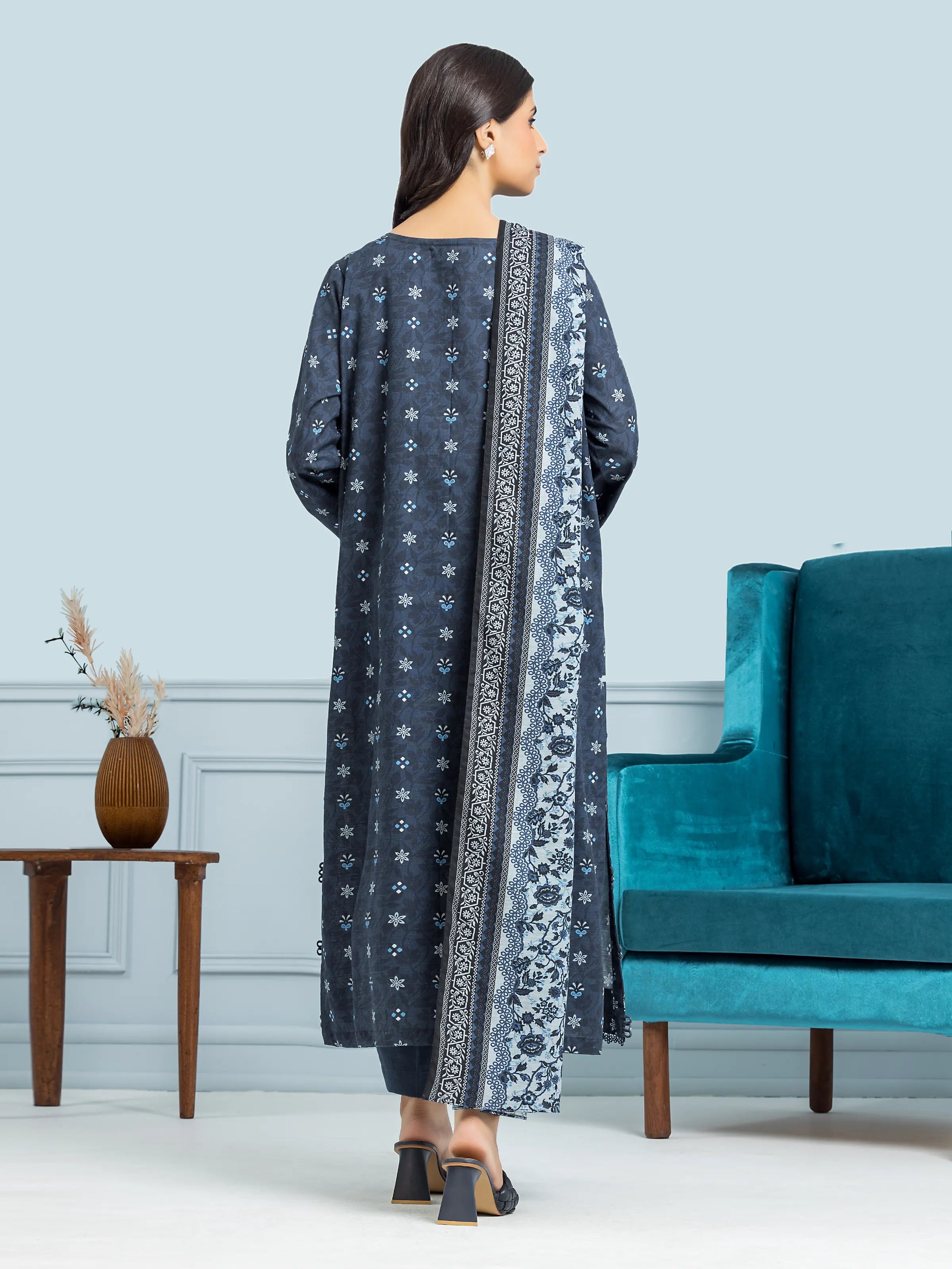 EDENROBE-29302-Unstitched Navy Blue Printed Khaddar 3 Piece
