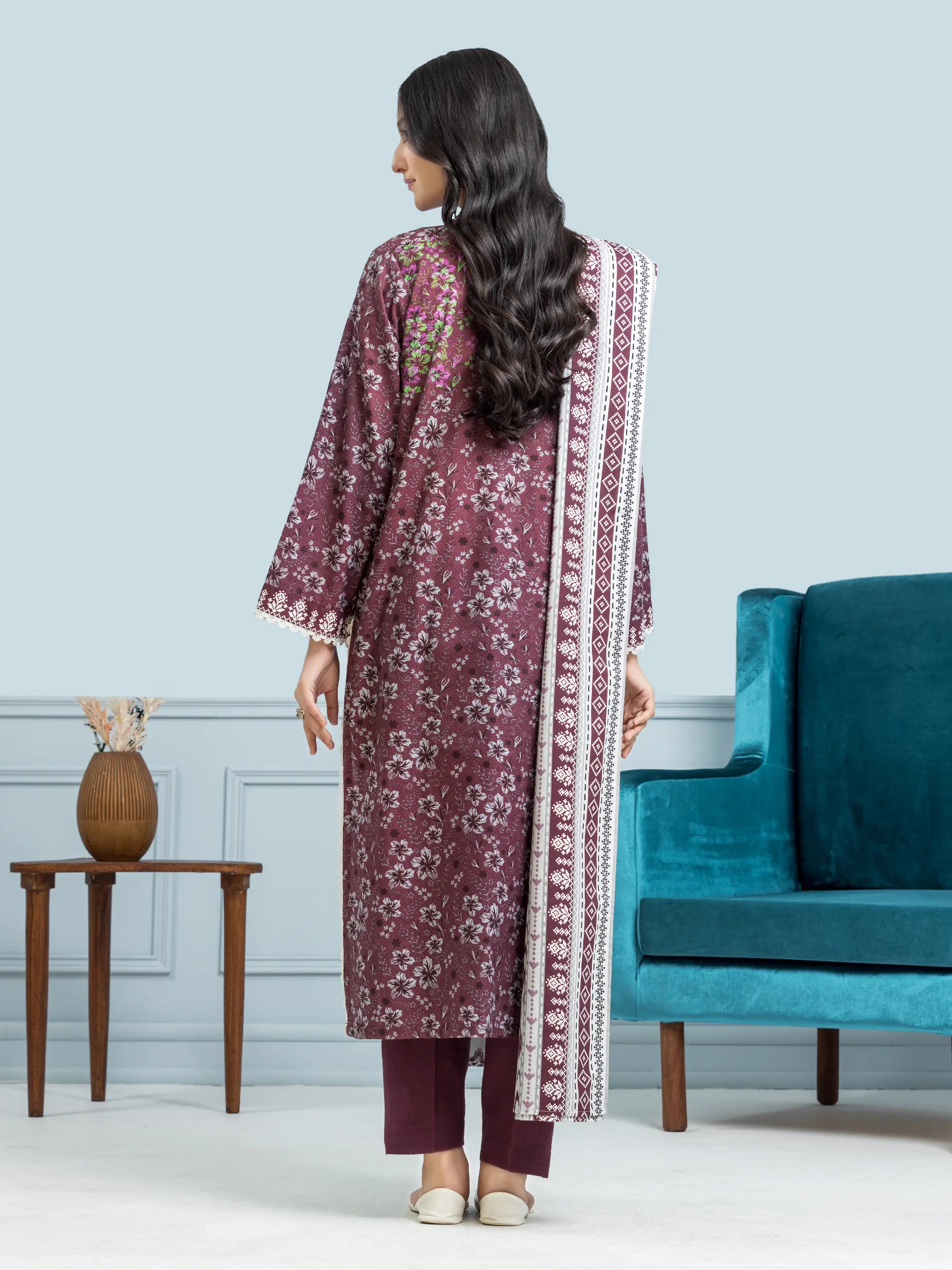 EDENROBE-29317-Unstitched Plum Printed Khaddar 3 Piece