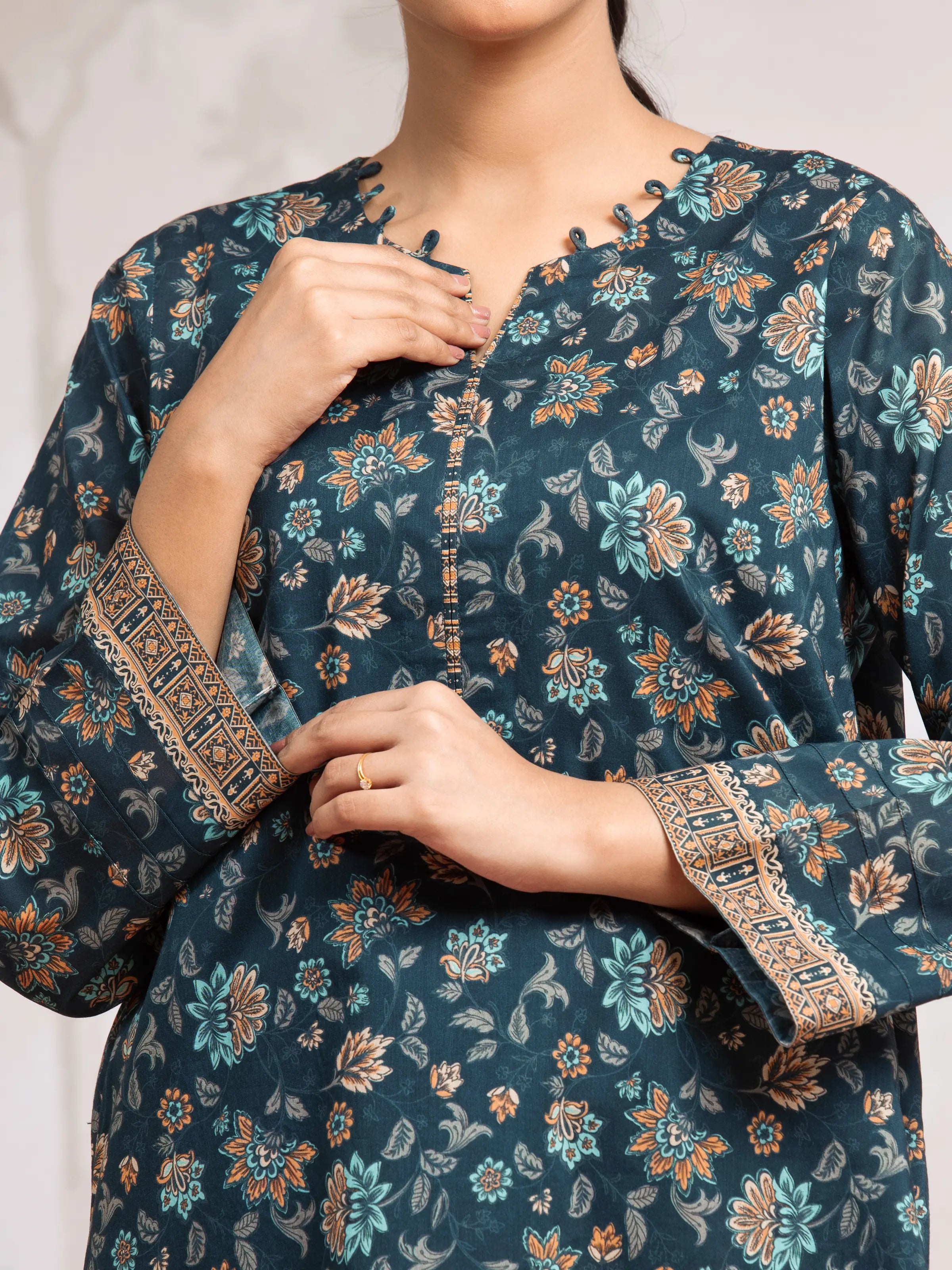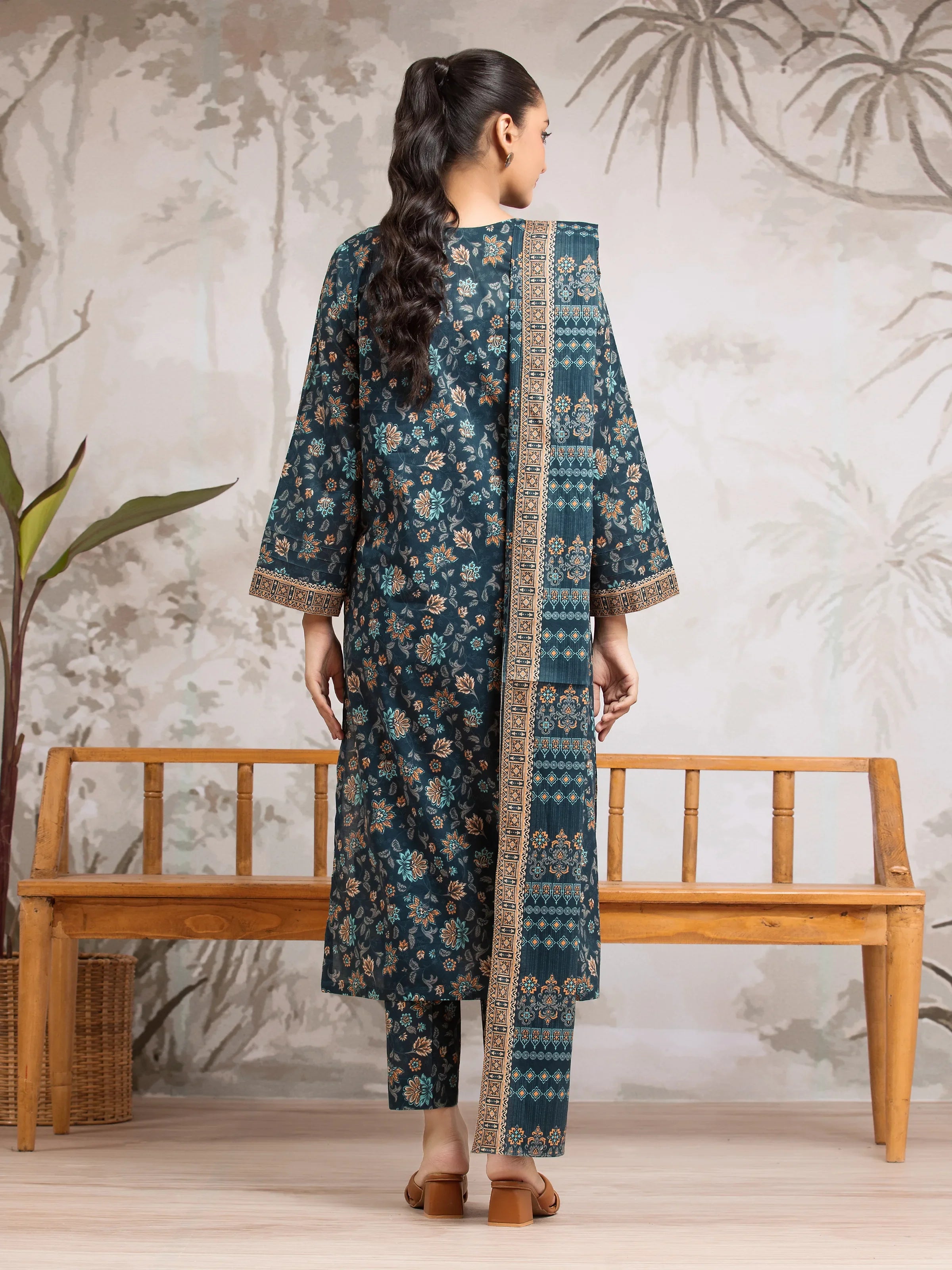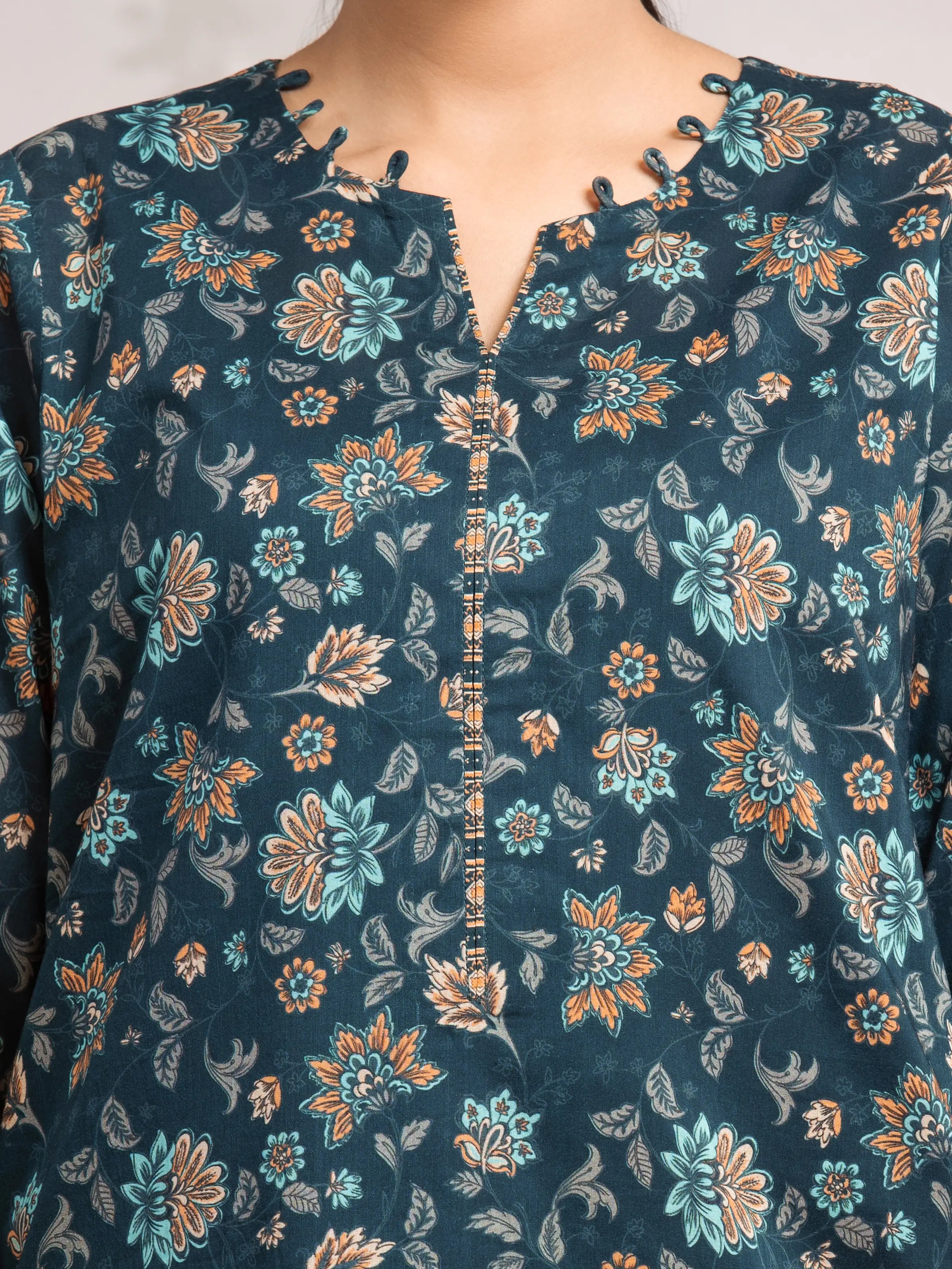 EDENROBE-29594-Unstitched Dark Teal Printed Khaddar 3 Piece