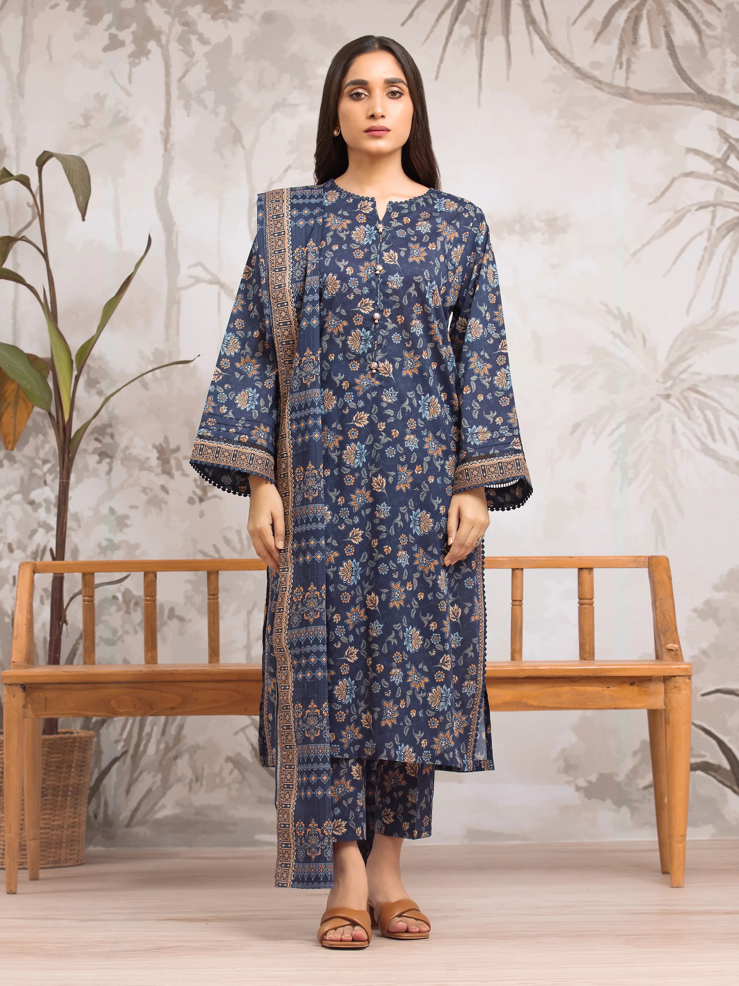 EDENROBE-29596-Unstitched Navy Blue Printed Khaddar 3 Piece