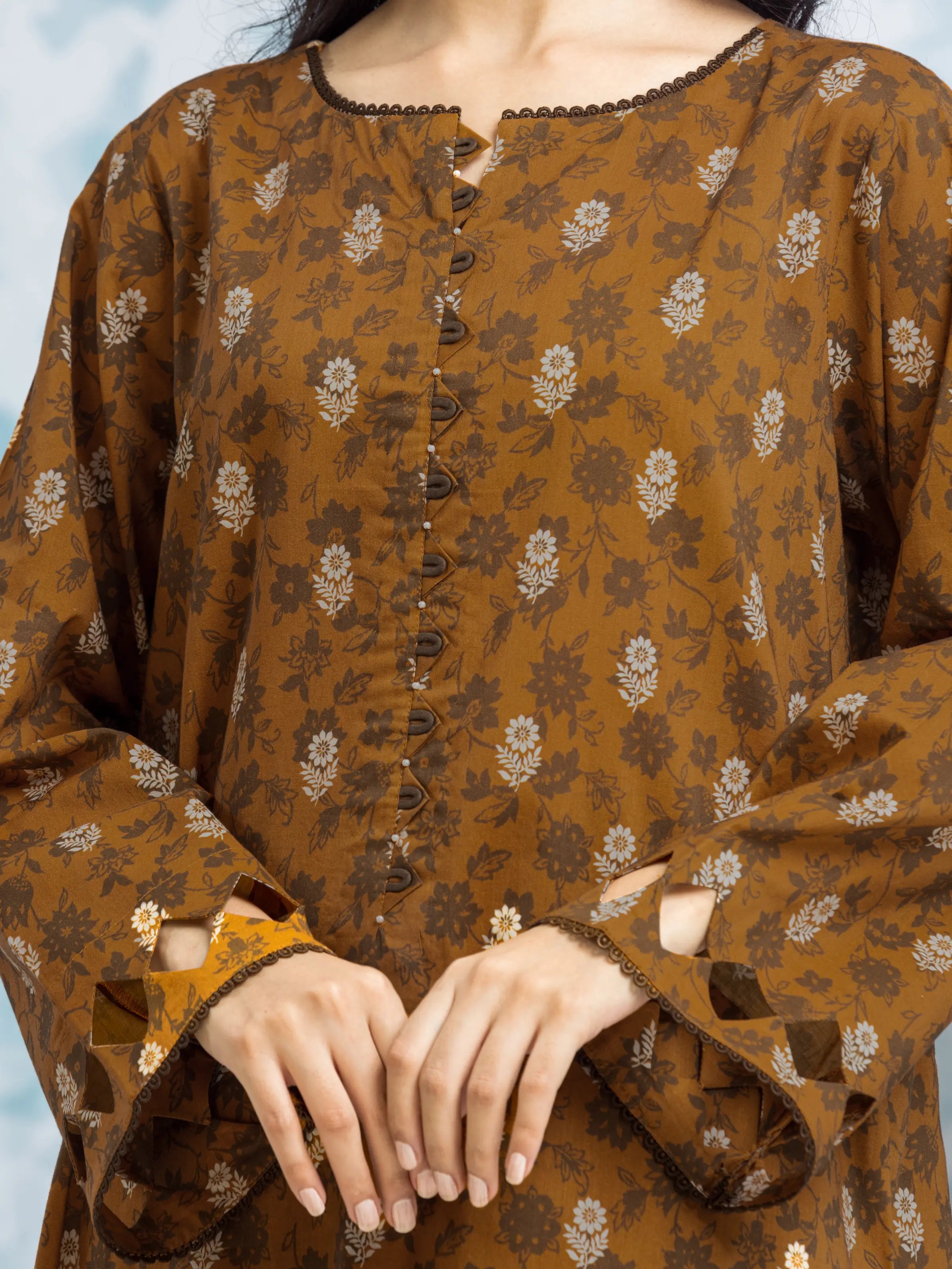 EDENROBE-29643-Unstitched Brown Printed Khaddar 3 Piece