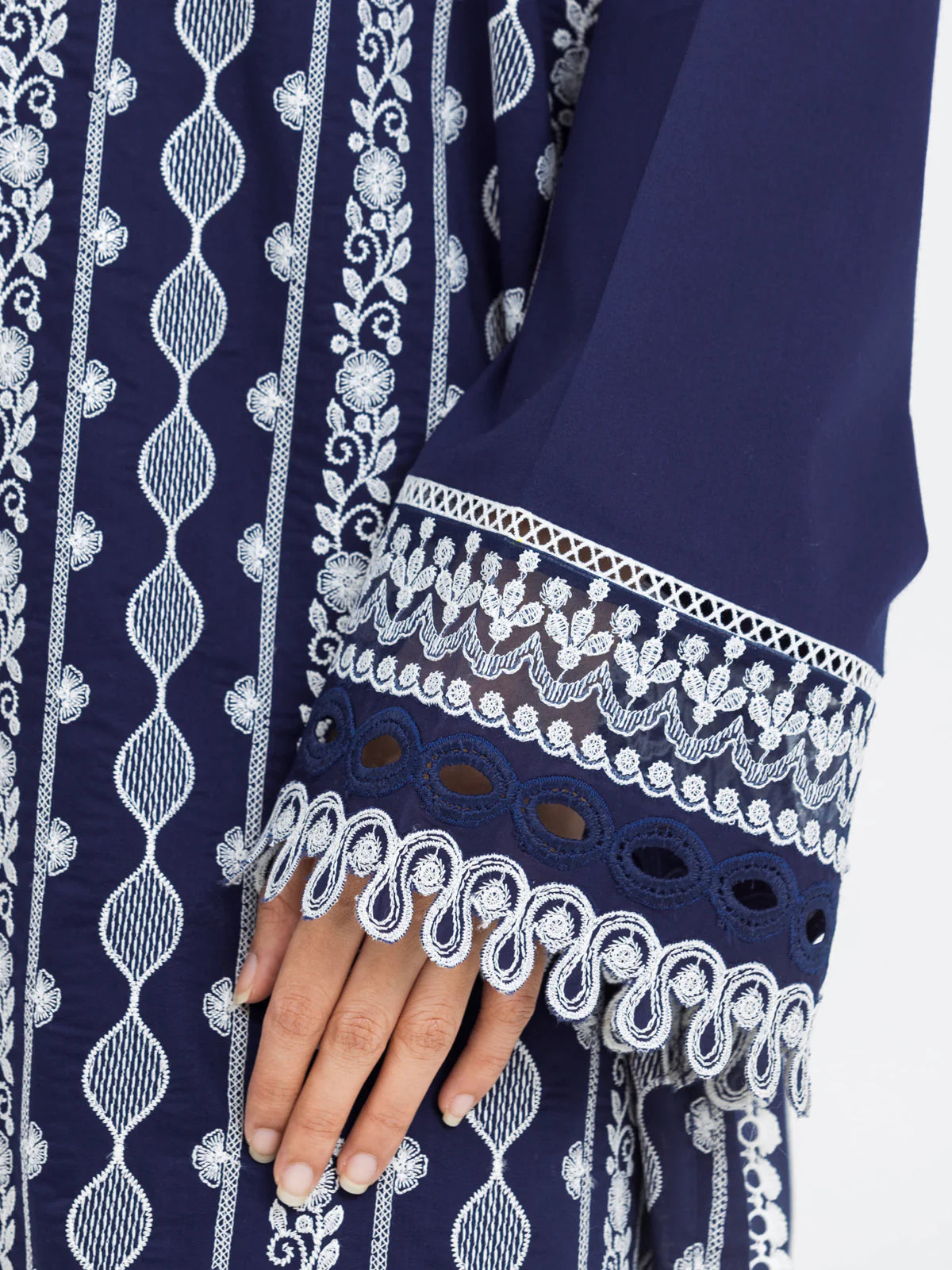 EDENROBE-30136-3P Unstitched Navy Blue Embroidered Cambric 3 Piece
