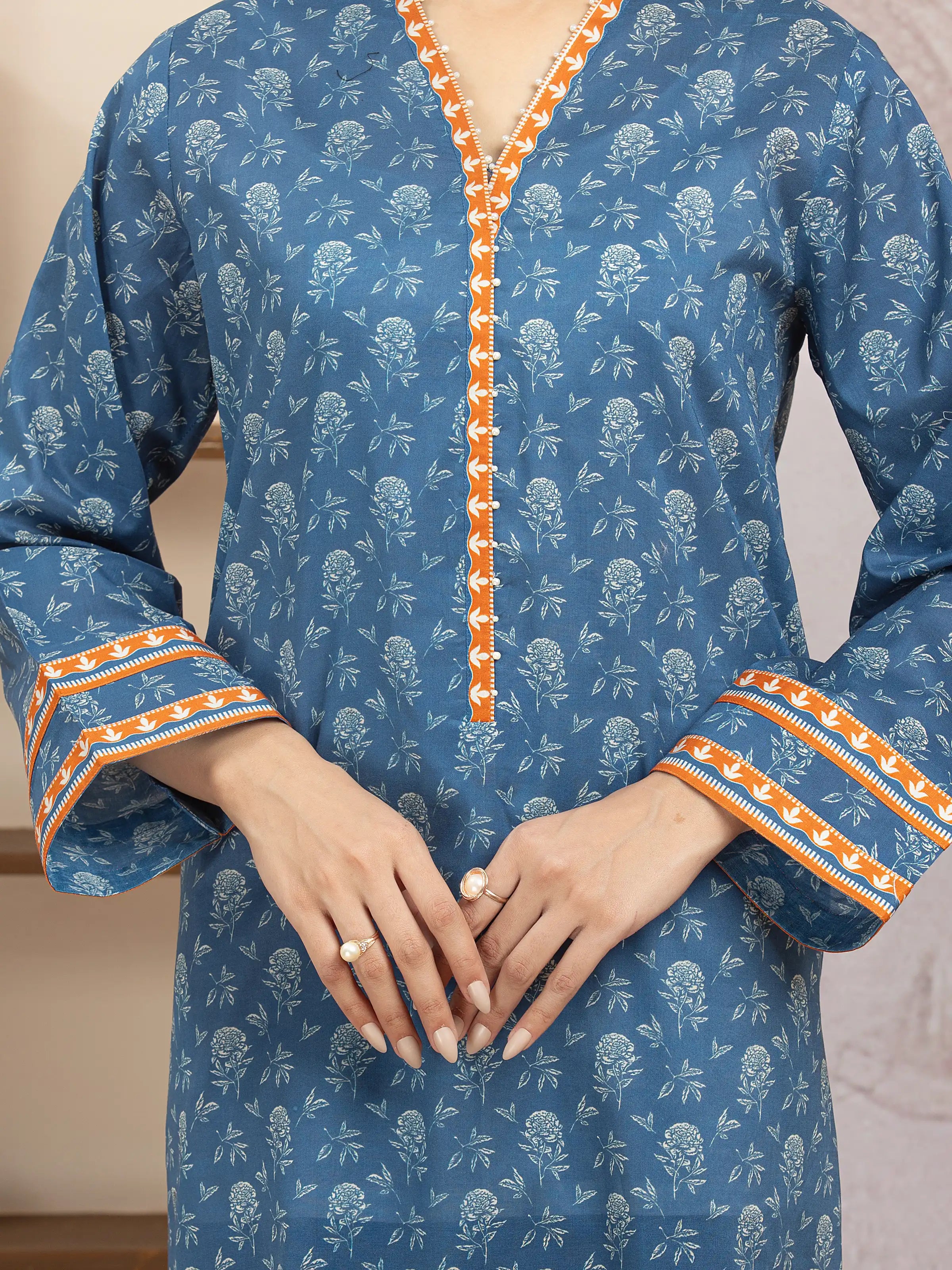 EDENROBE-35026-Unstitched Blue Printed Lawn 3 Piece