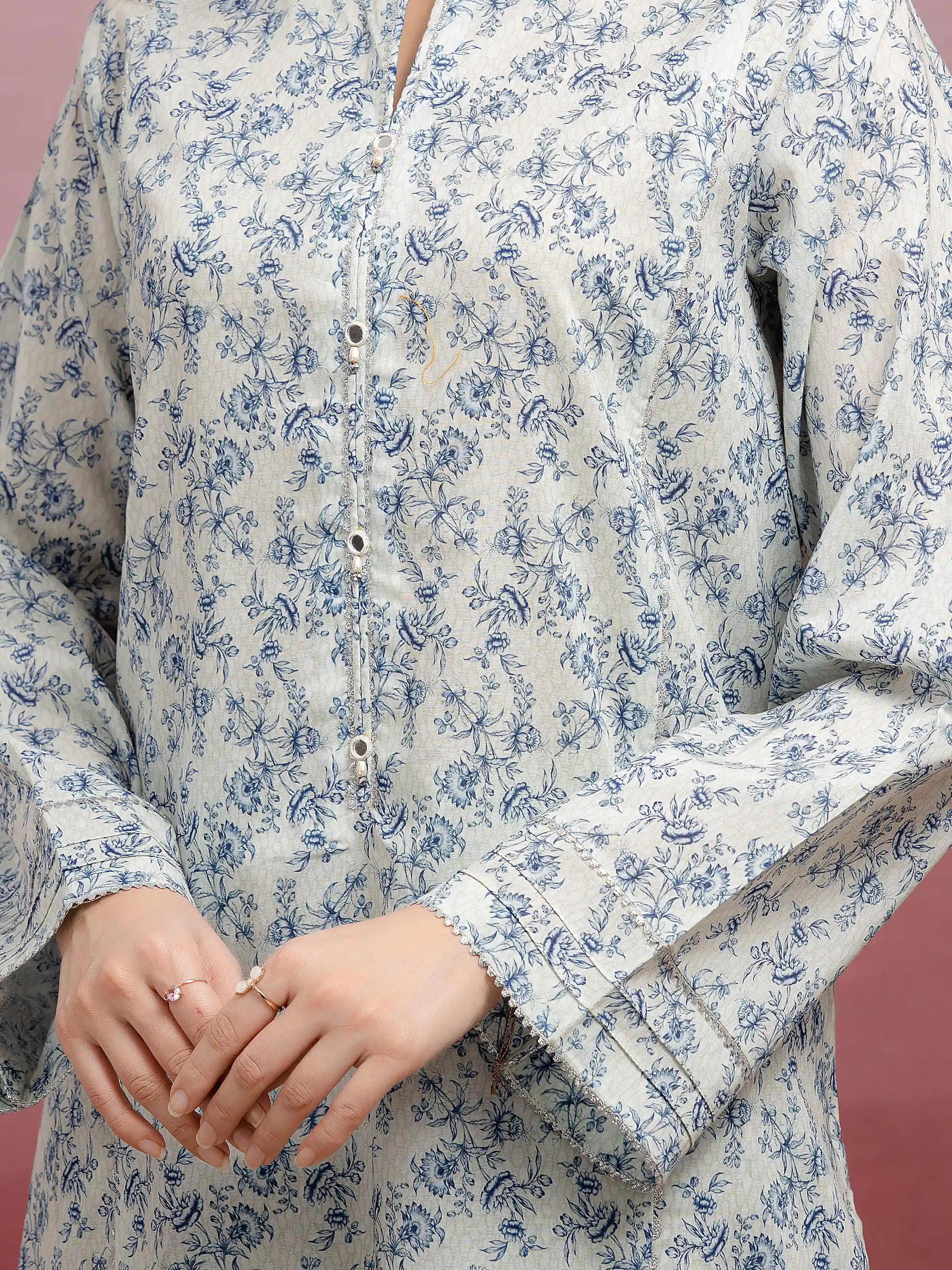 EDENROBE-35039-Unstitched Grey & Blue Printed Lawn 3 Piece