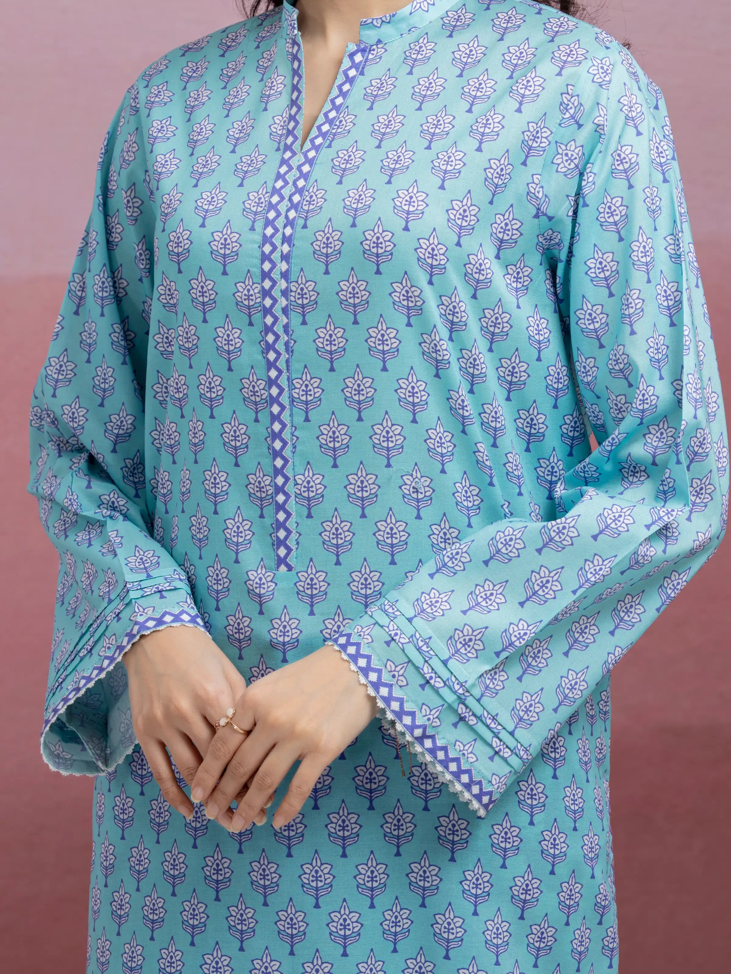 EDENROBE-35424-Unstitched Aqua Printed Lawn 2 Piece