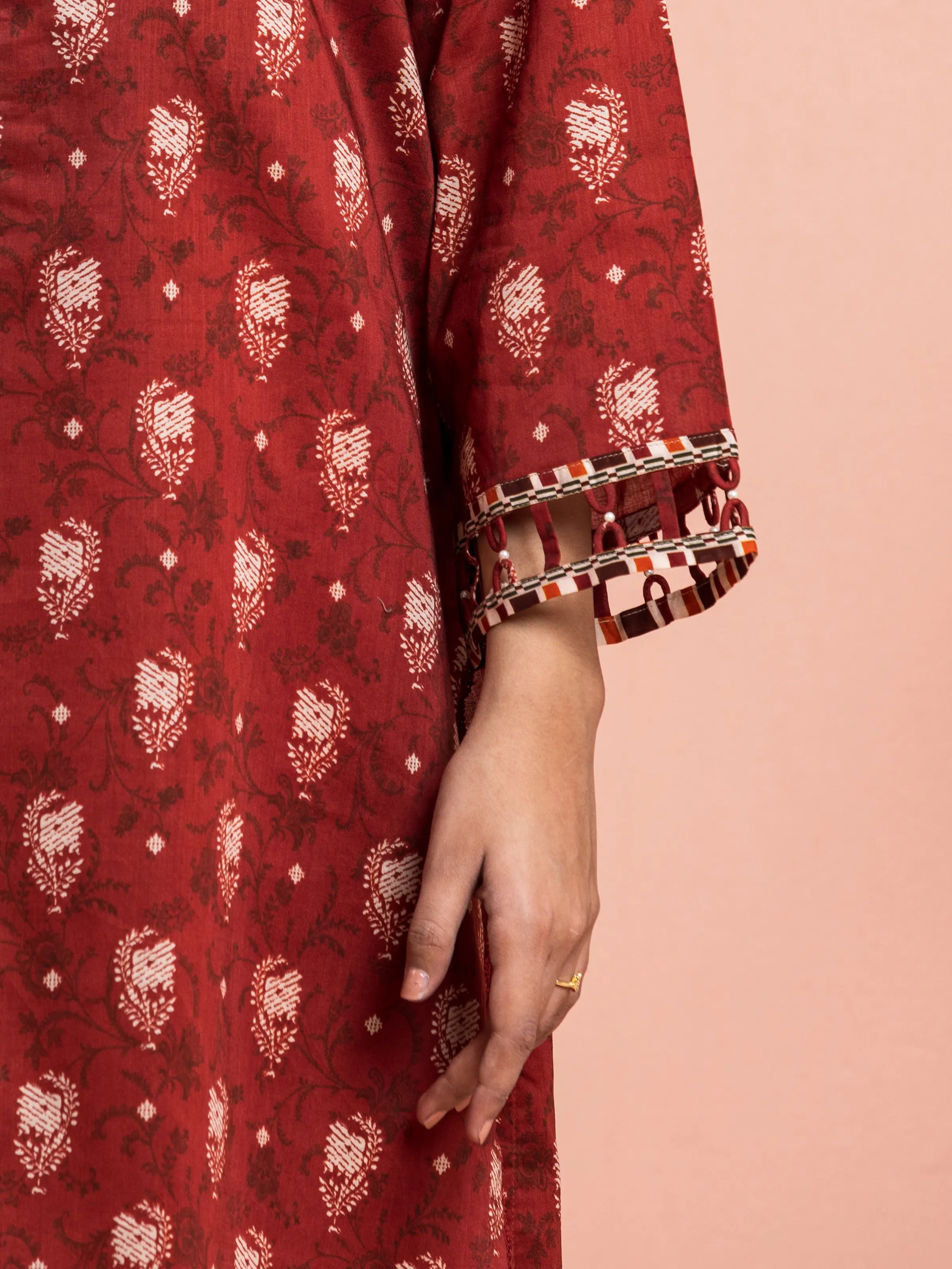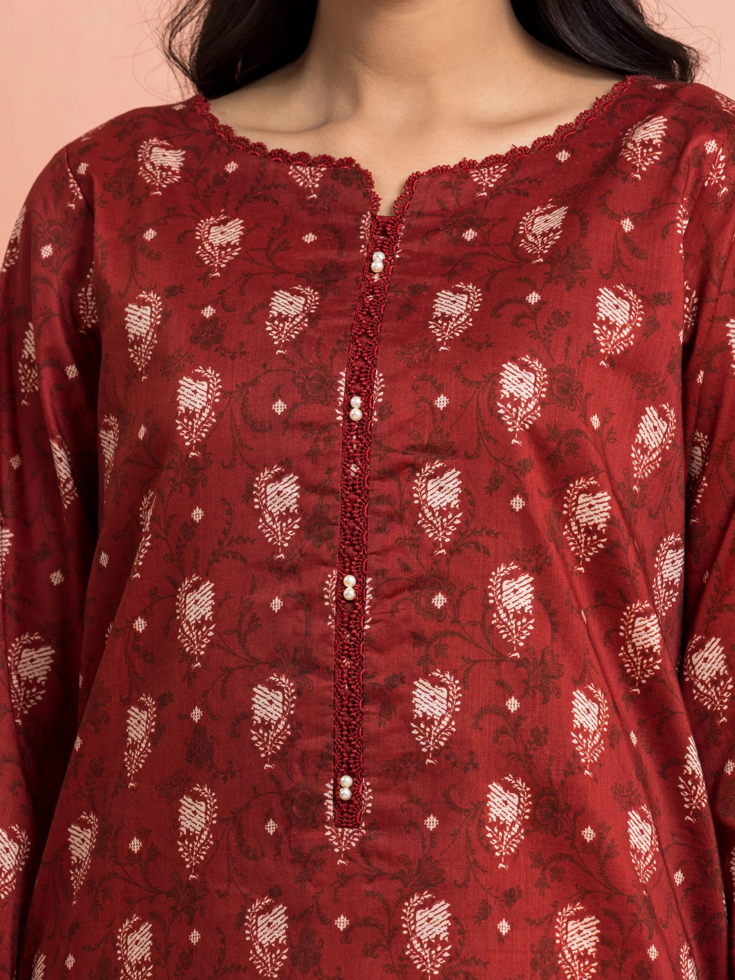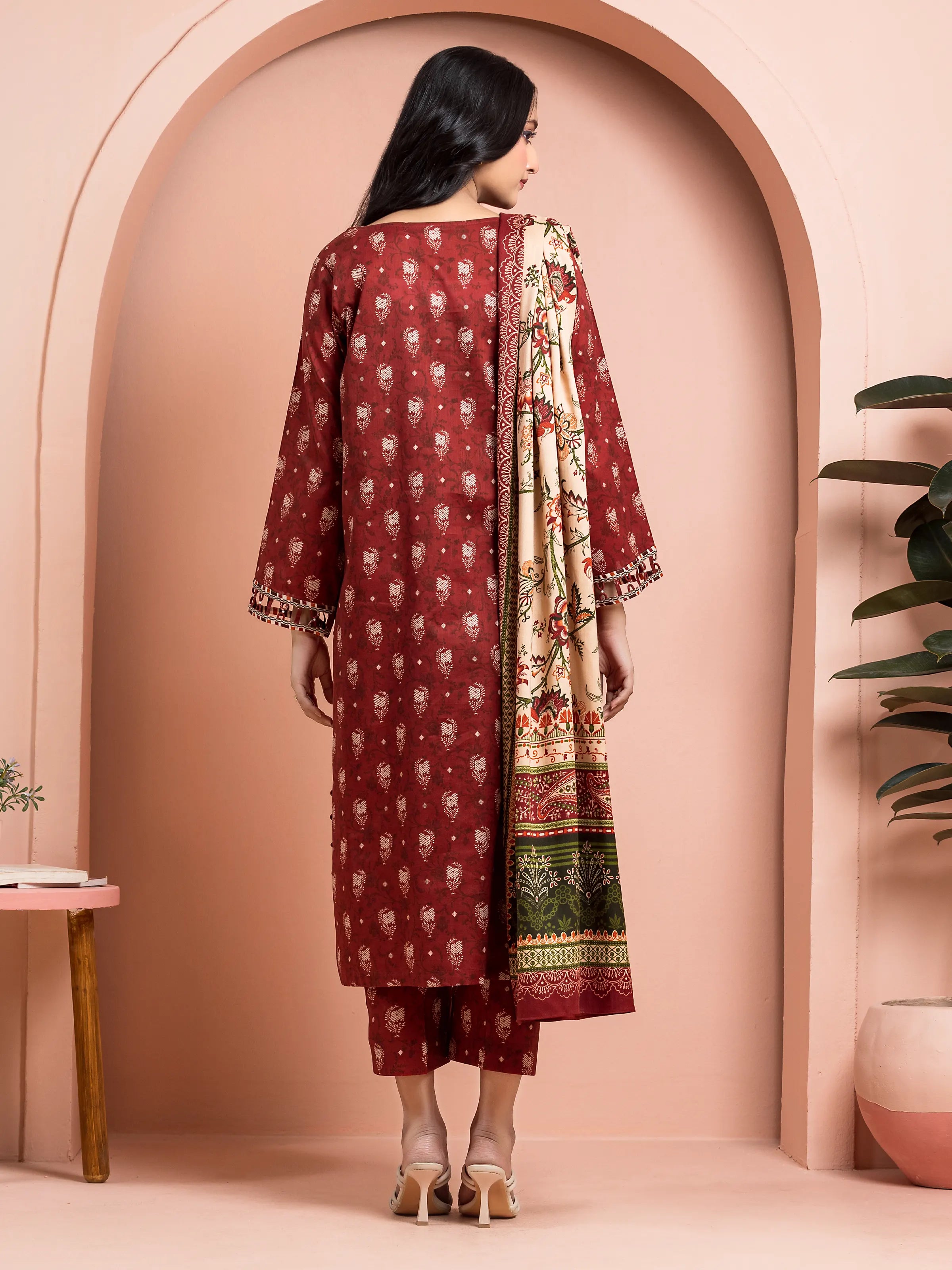 EDENROBE-M3-074-Unstitched Dark Maroon Printed Khaddar 3 Piece