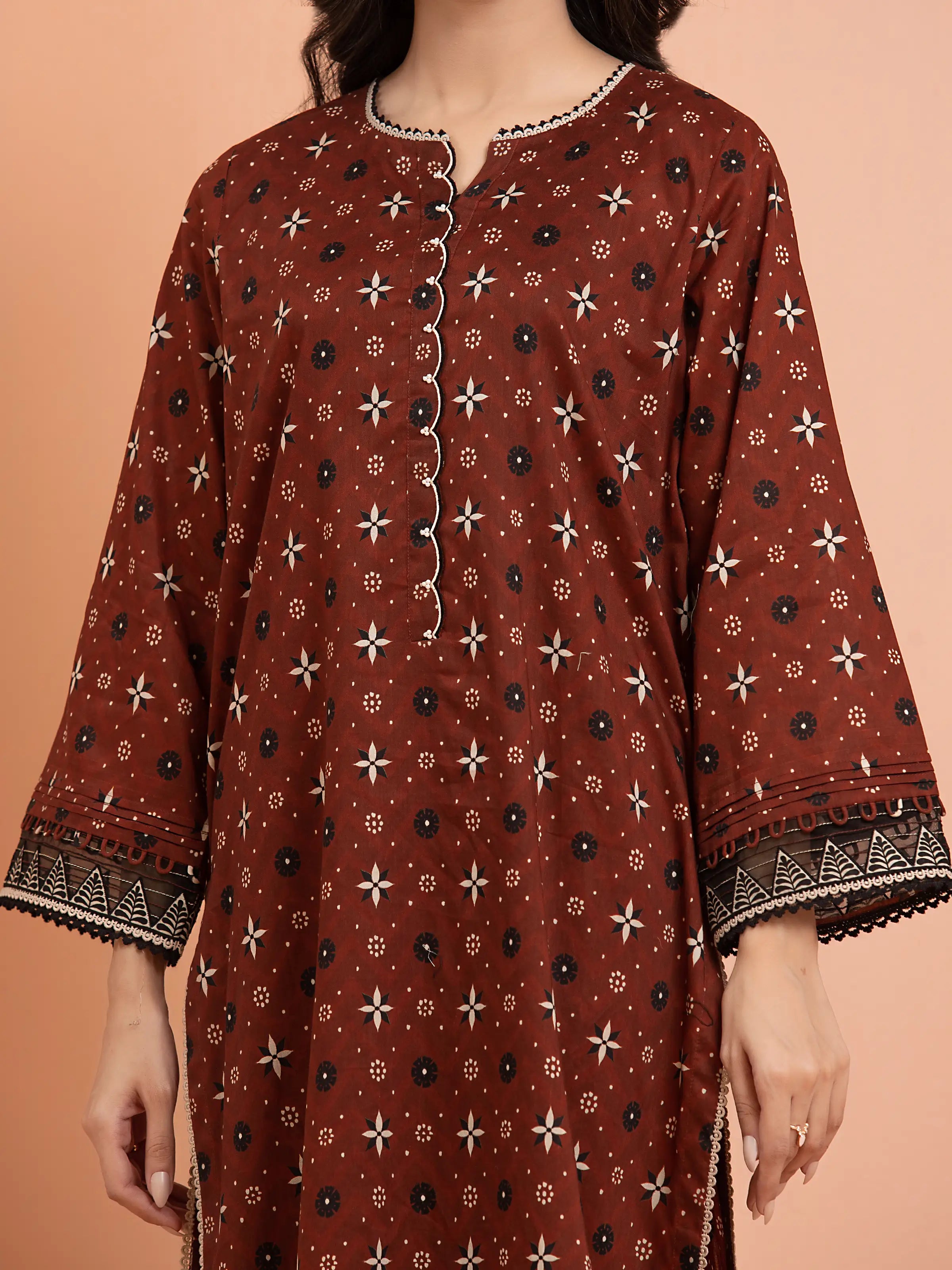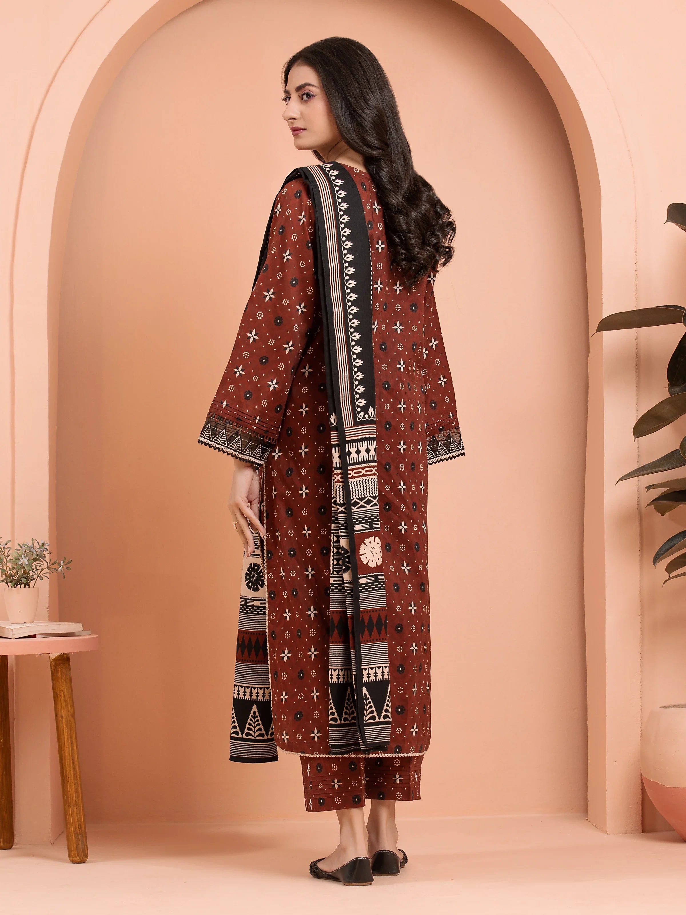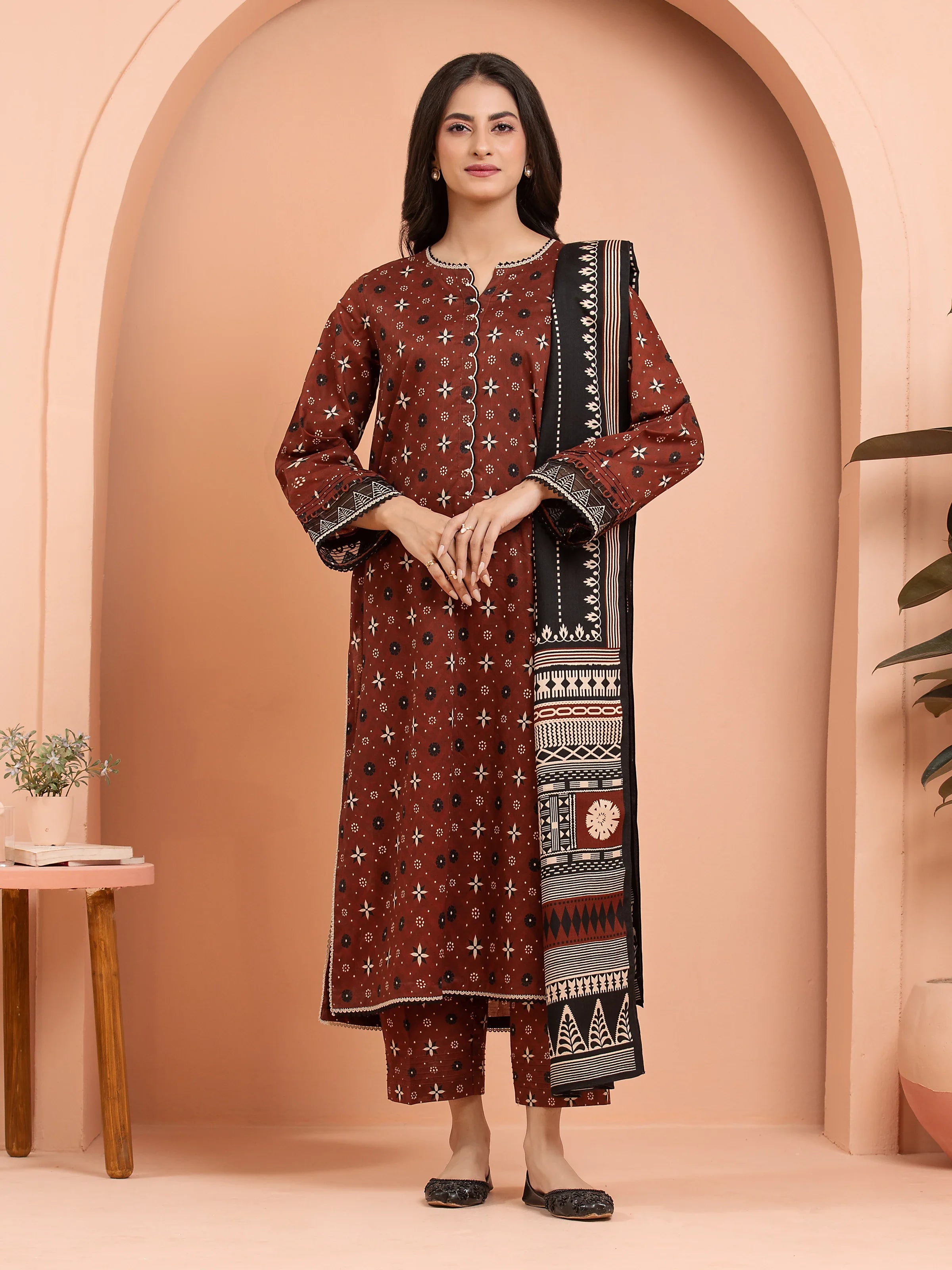 EDENROBE-M3-076-Unstitched Chocolate Brown Printed Khaddar 3 Piece
