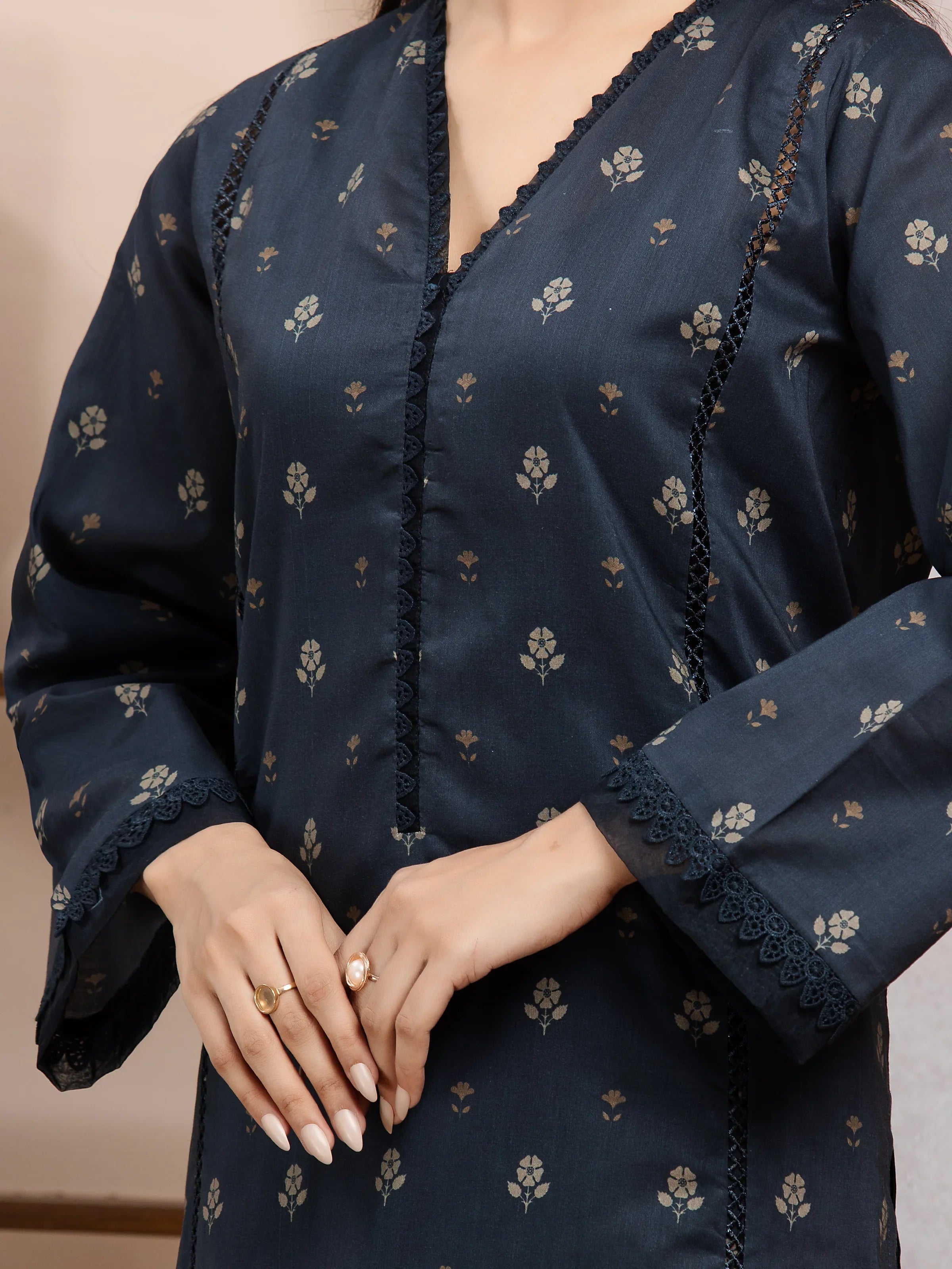 EDENROBE-M3-082-Unstitched Black Printed Khaddar 3 Piece