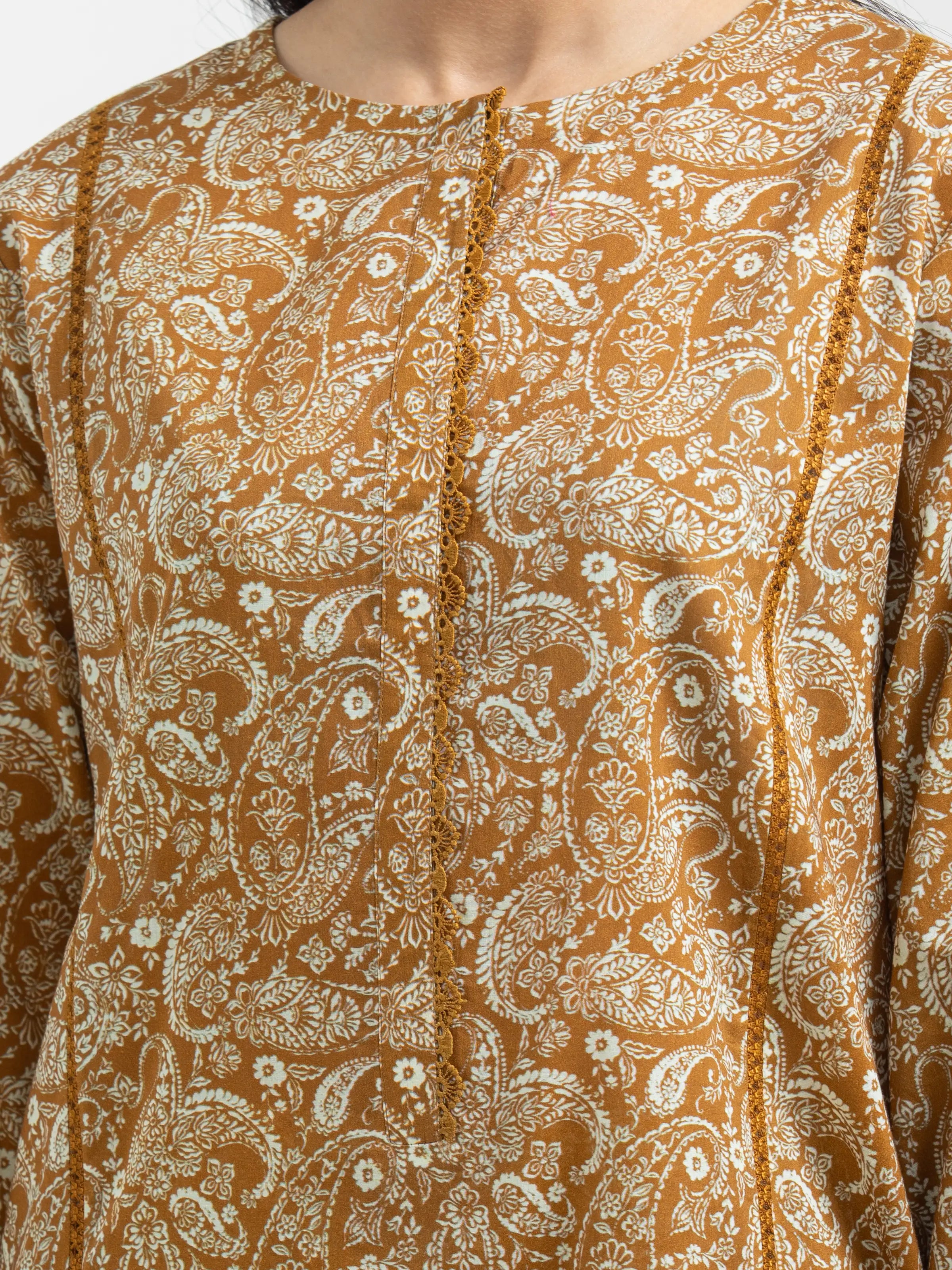 EDENROBE-M3-089-Unstitched Dark Mustard Printed Khaddar 3 Piece