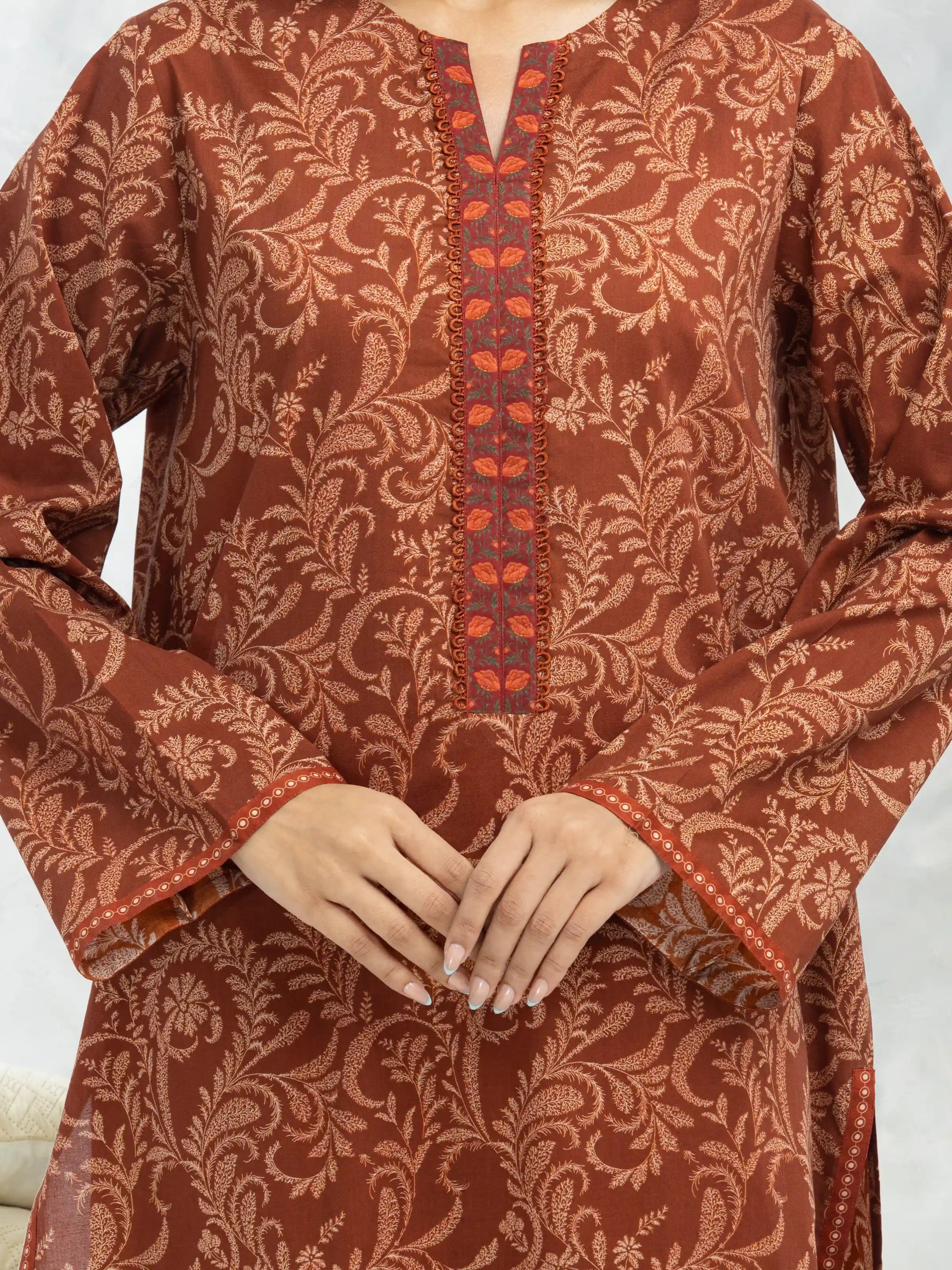 EDENROBE-M3-104-Unstitched Brown Printed Khaddar 3 Piece