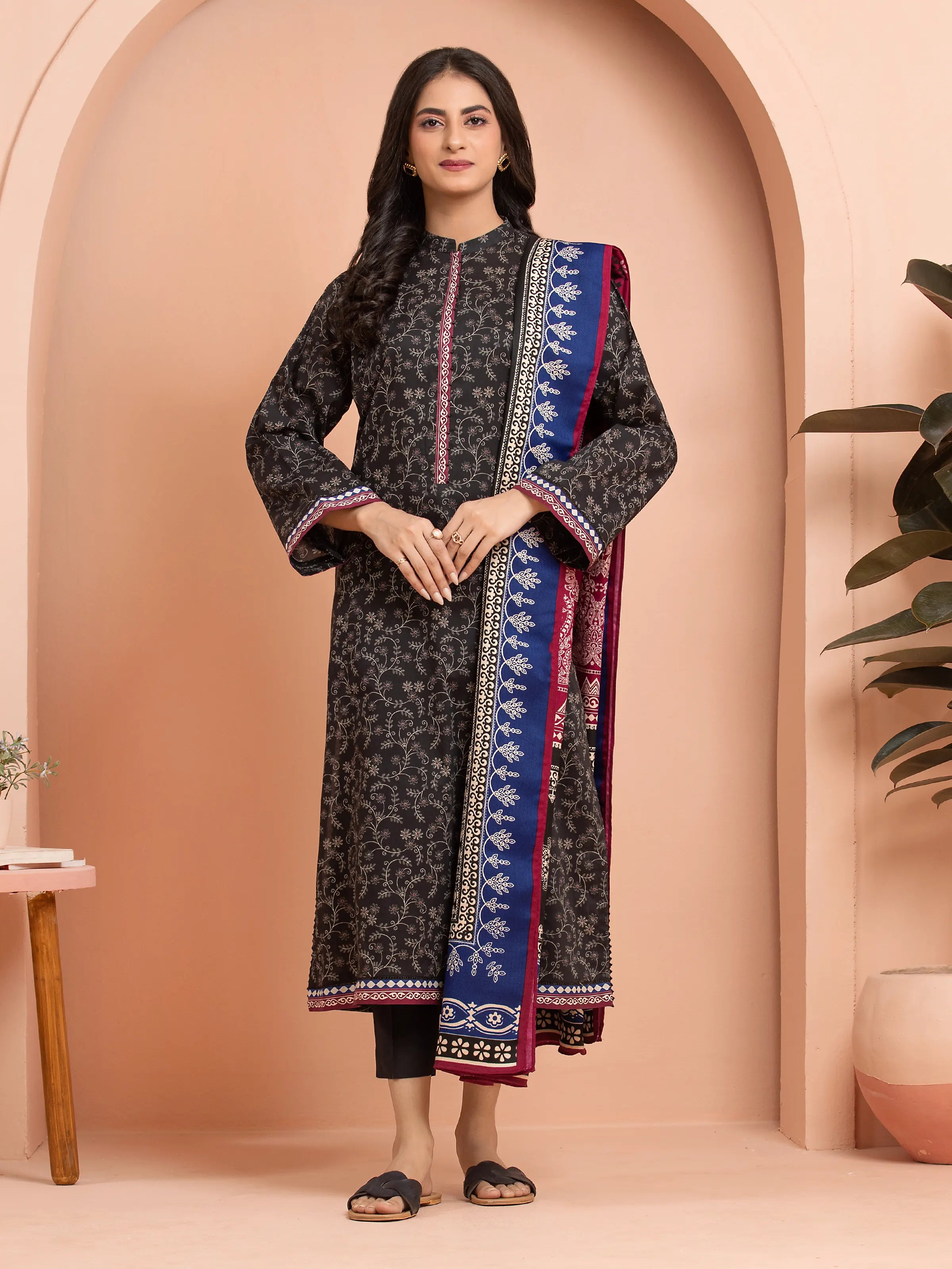 Article No: EWU24M3-105-3P Fabric: Khaddar3M Printed Khaddar Shirt2.5M Printed Herringbone Shawl1.8M Dyed Khaddar Trouser  Season: Fall Spring Winter