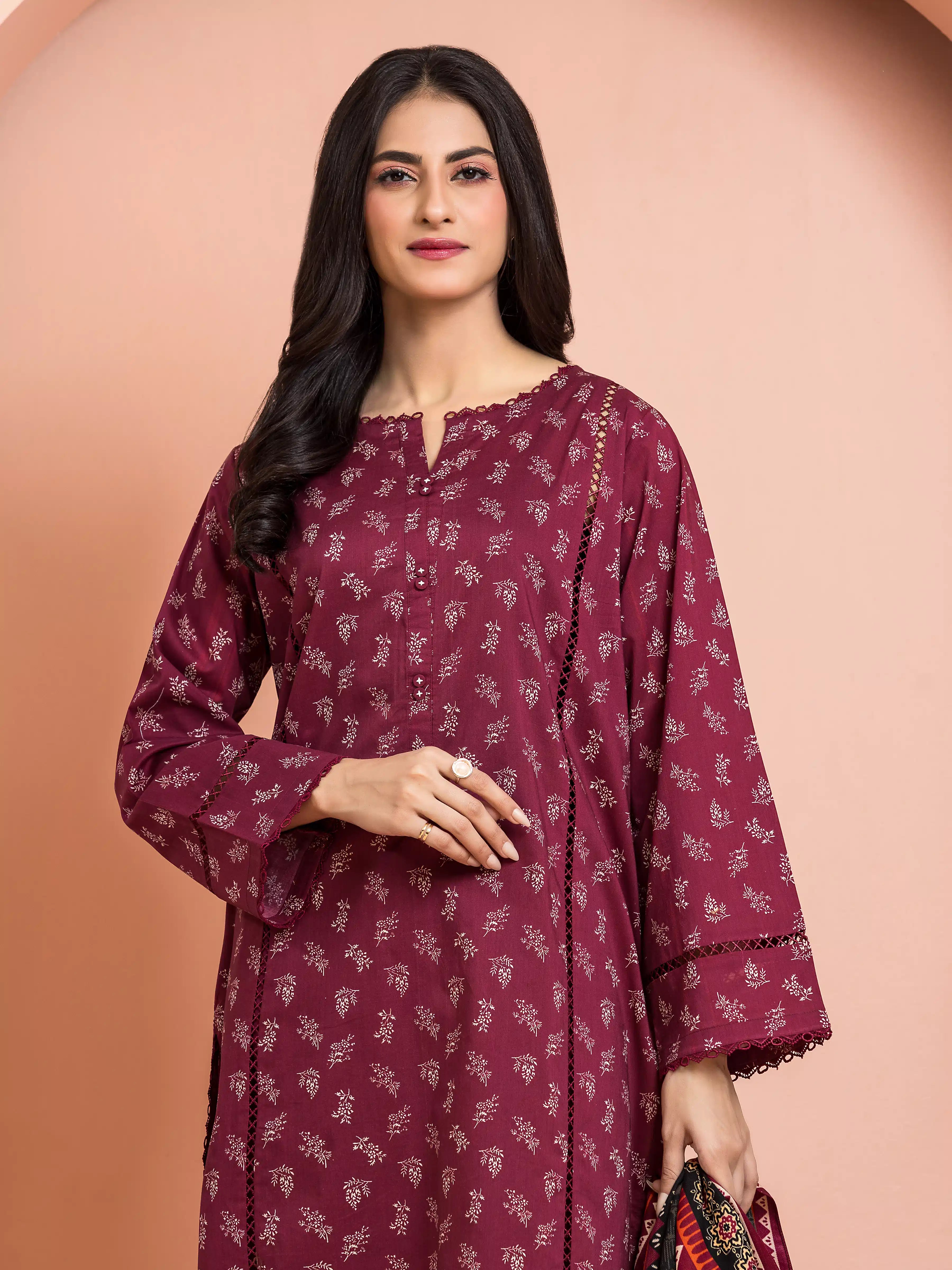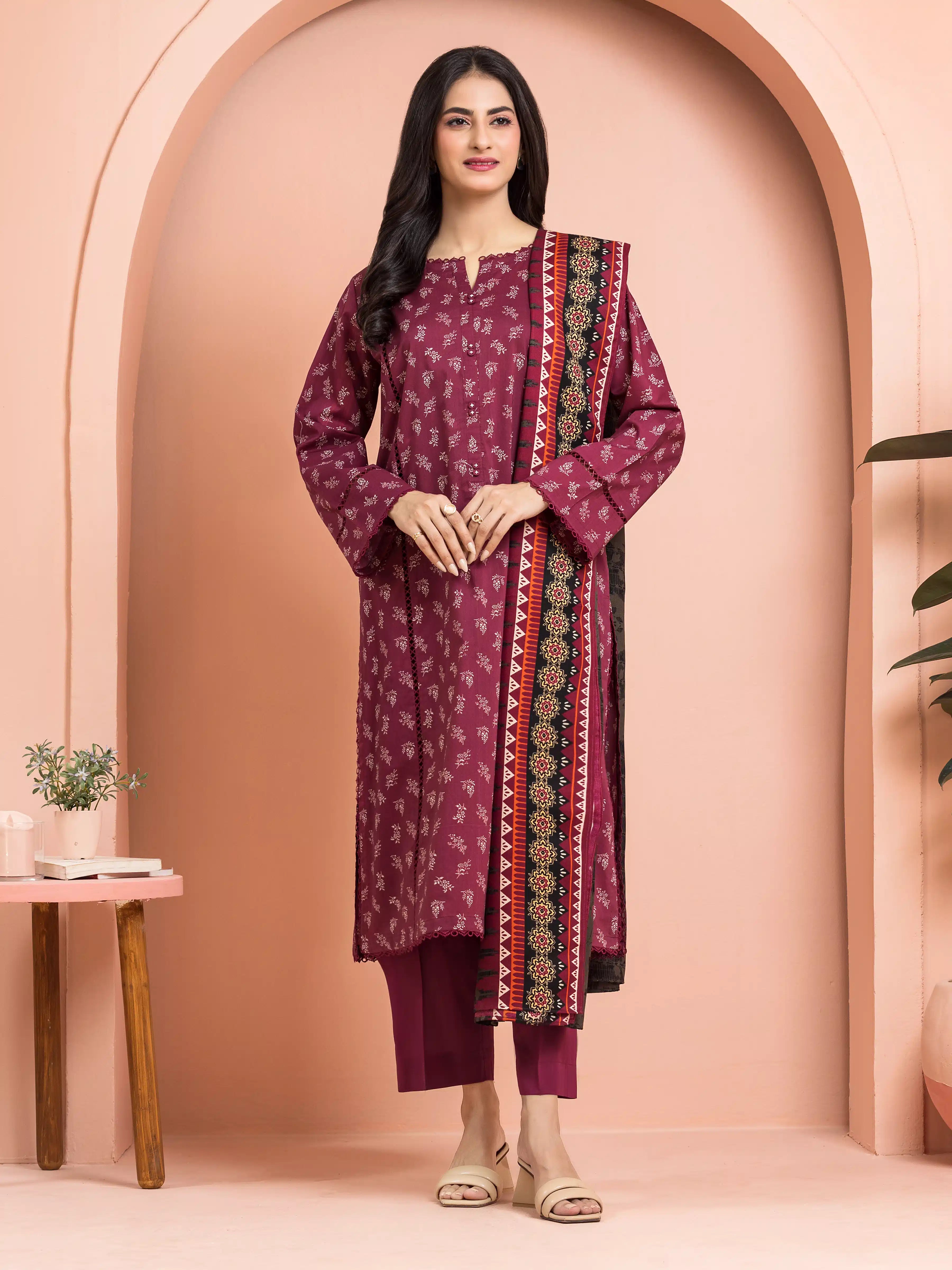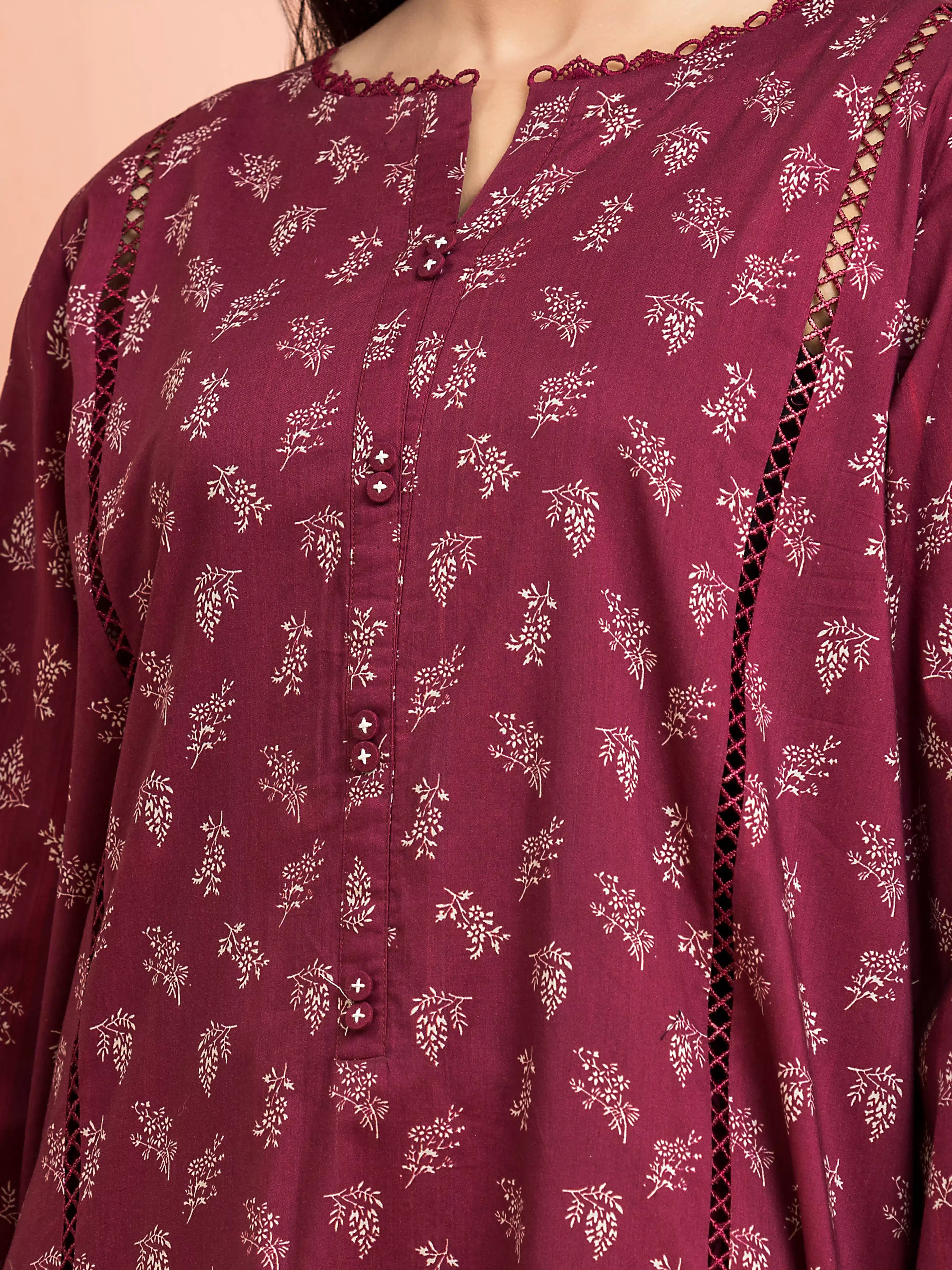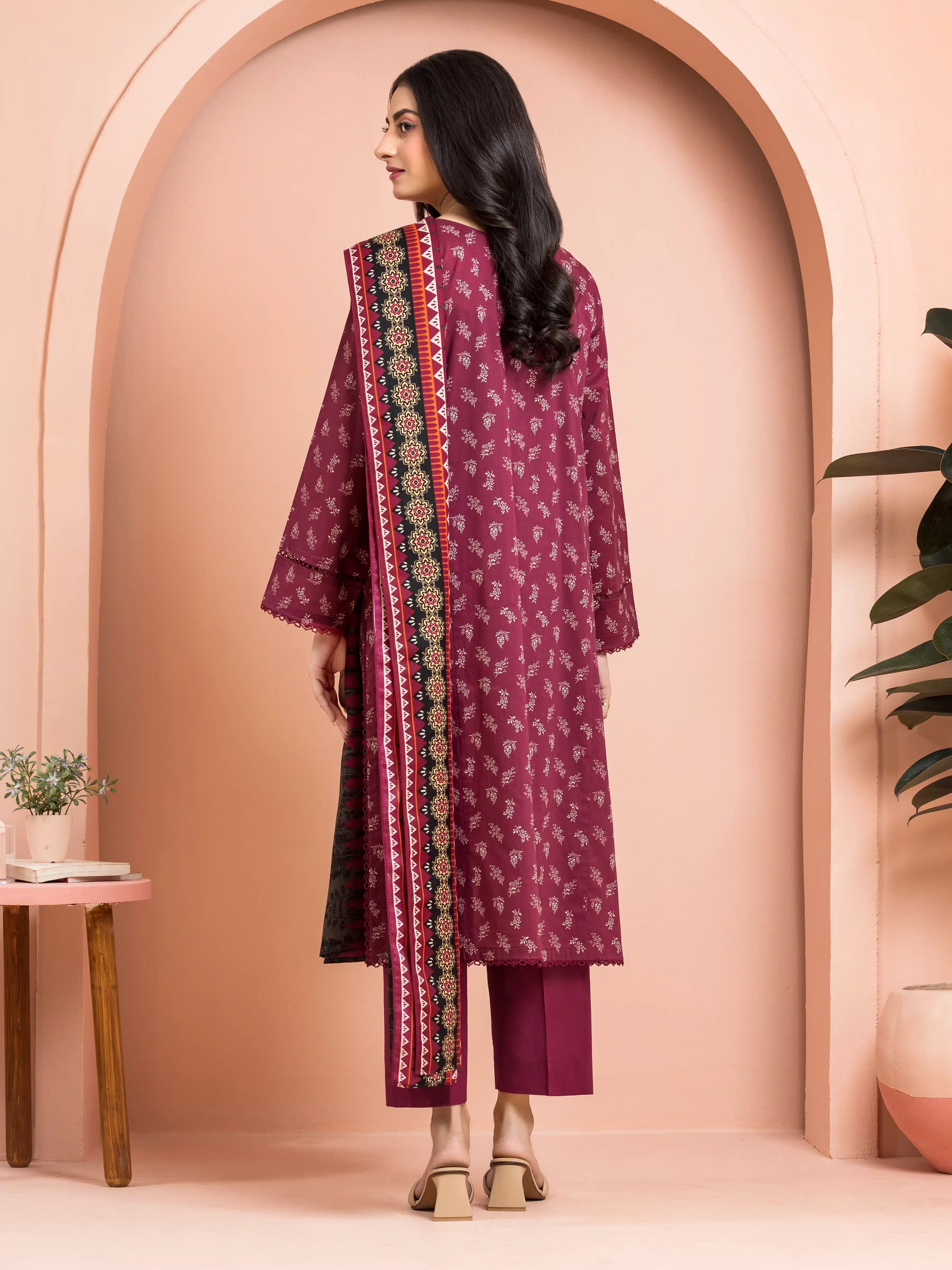 EDENROBE-M3-113-Unstitched Burgundy Printed Khaddar 3 Piece