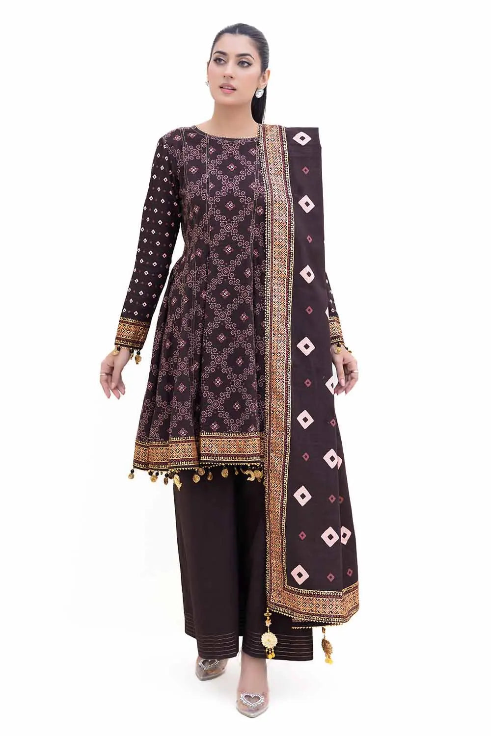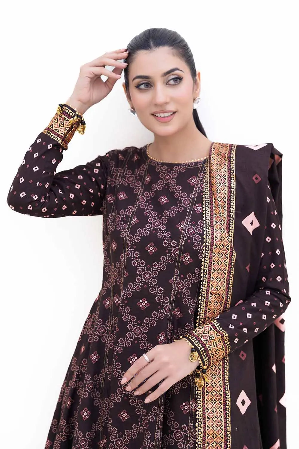 GUL AHMED -3PC Unstitched Thick Gold Printed Khaddar Suit K-42004 T