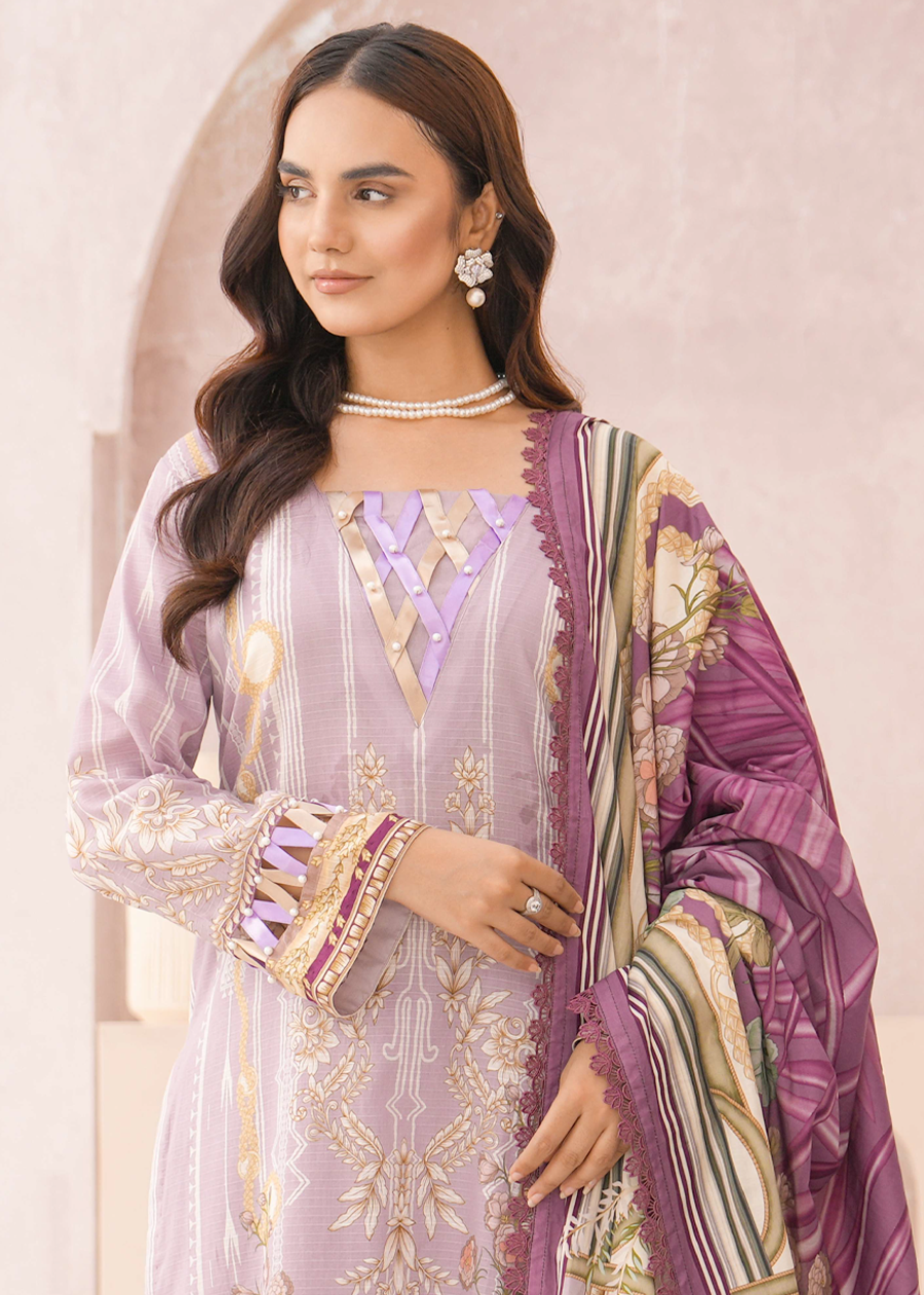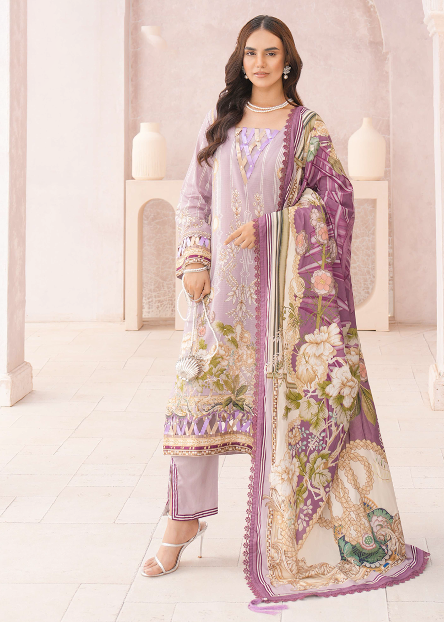 Digital Printed Doria Lawn front and back. Dyed Cotton Trouser. Digitally printed Lawn duppata