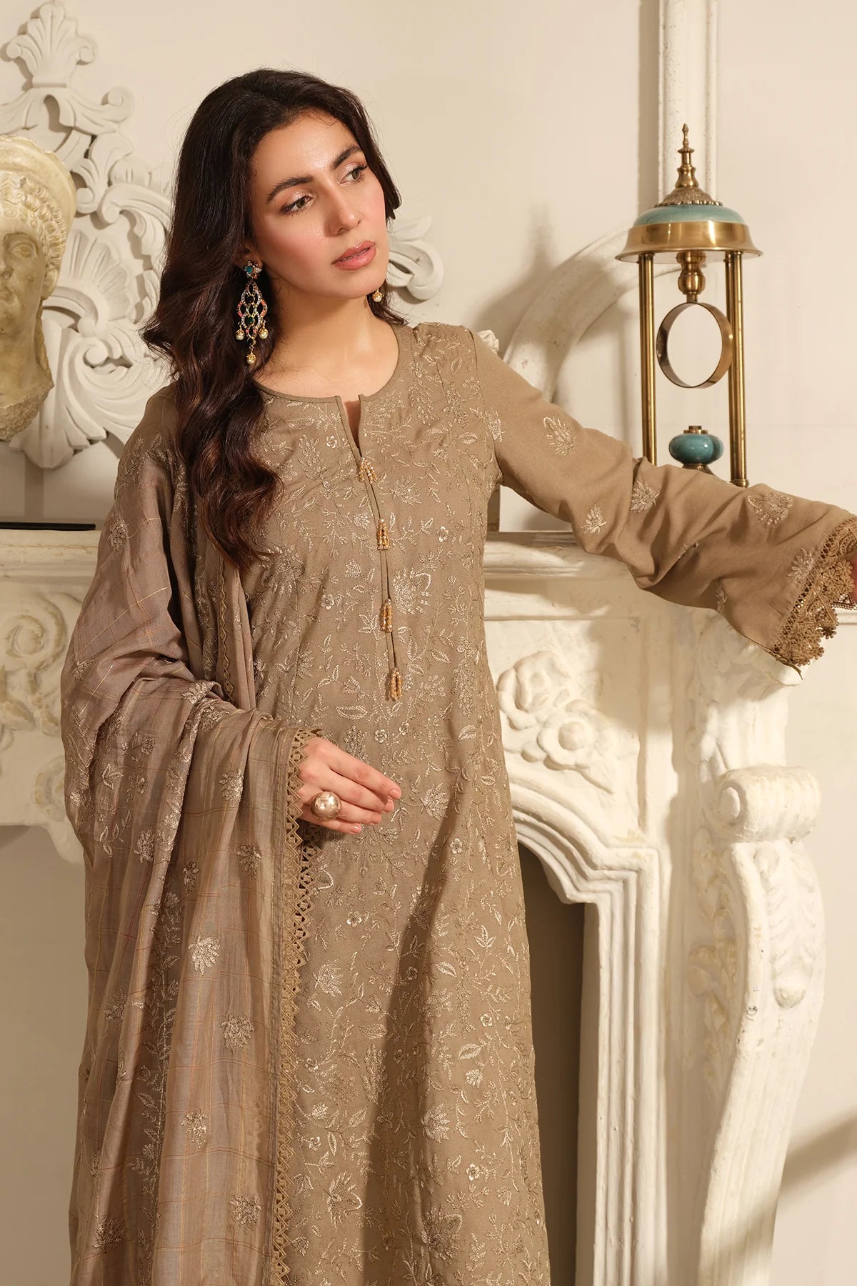 Shirt: Embroidered Plain KarandiTrouser: KarandiDupatta: Ready To Wear