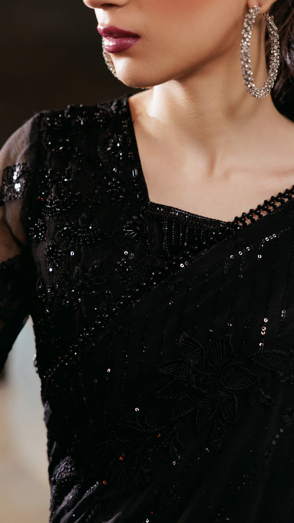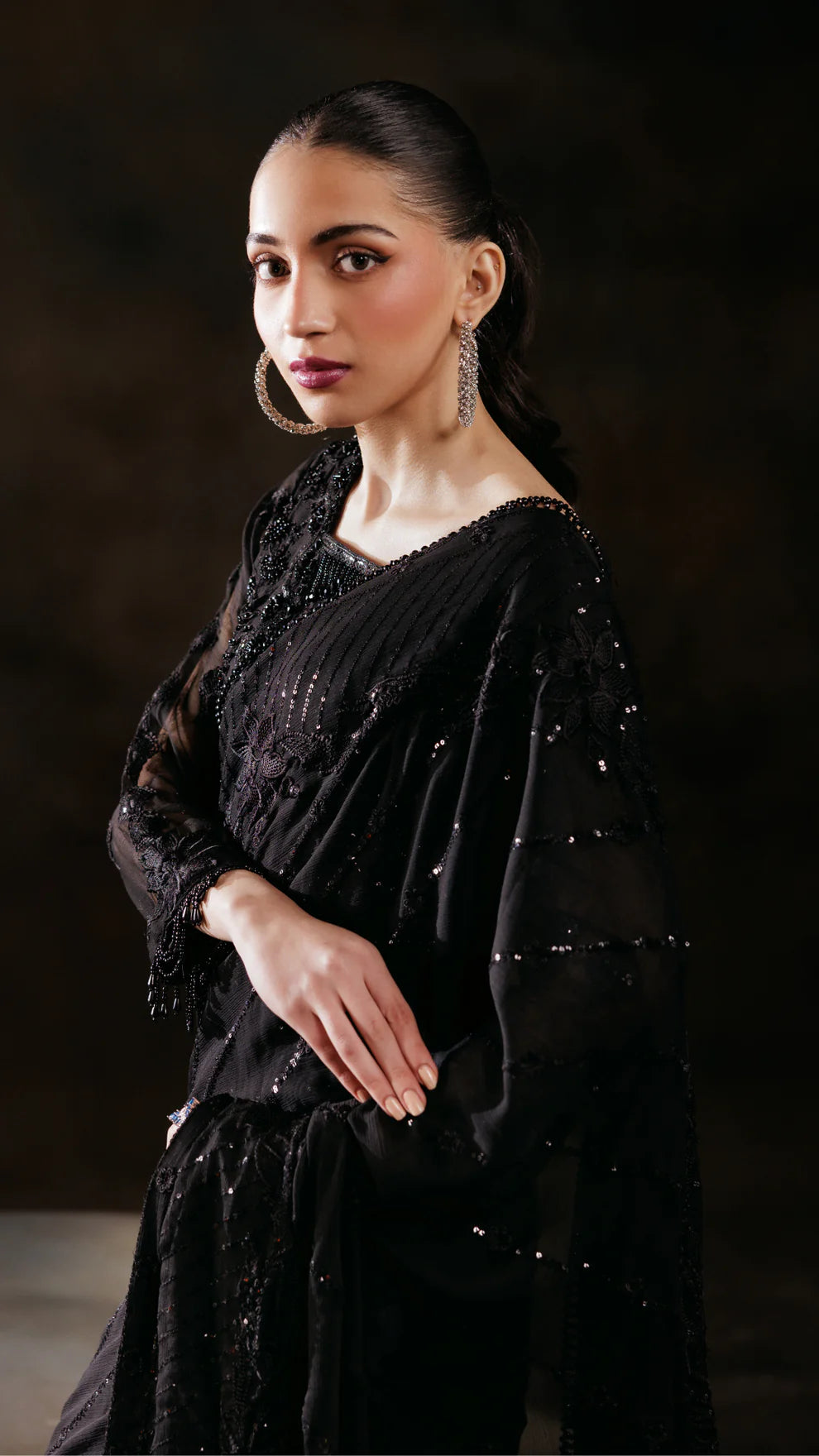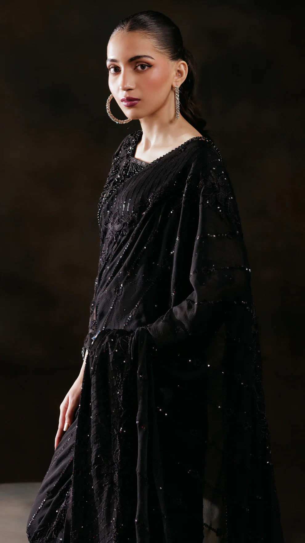 Embroidered chiffon saree 3 side patti 3.25 yds